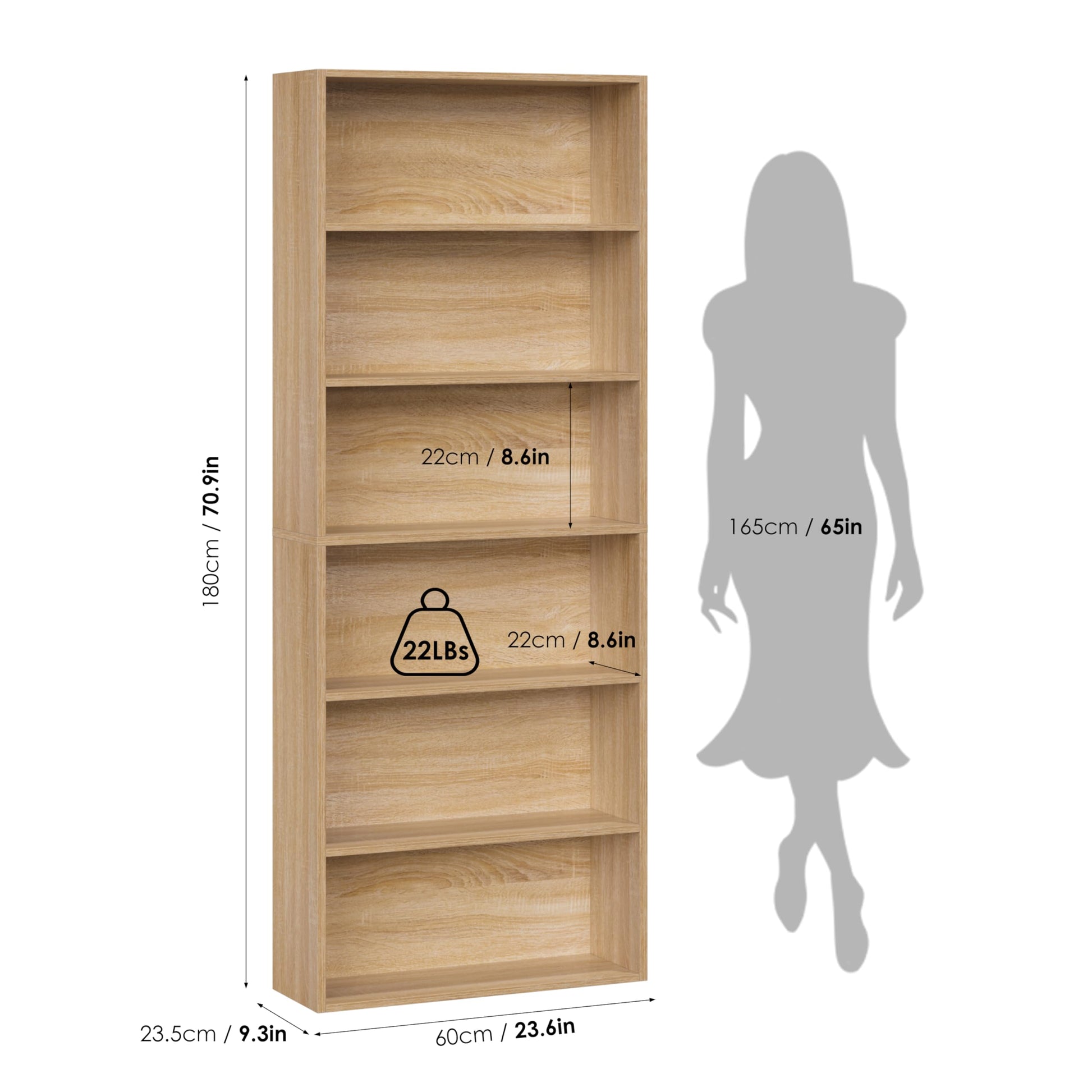 6-Tier Open Bookcase in Light Oak, Freestanding Tall Bookshelf for Bedroom, Living Room and Office, Display Storage Shelves, Modern Bookshelf (Light Oak)