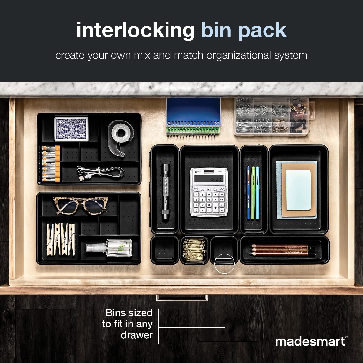 8-Piece Interlocking Bin Pack-CARBON COLLECTION Customizable Multi-Purpose Storage, Durable, Easy to Clean & BPA-Free