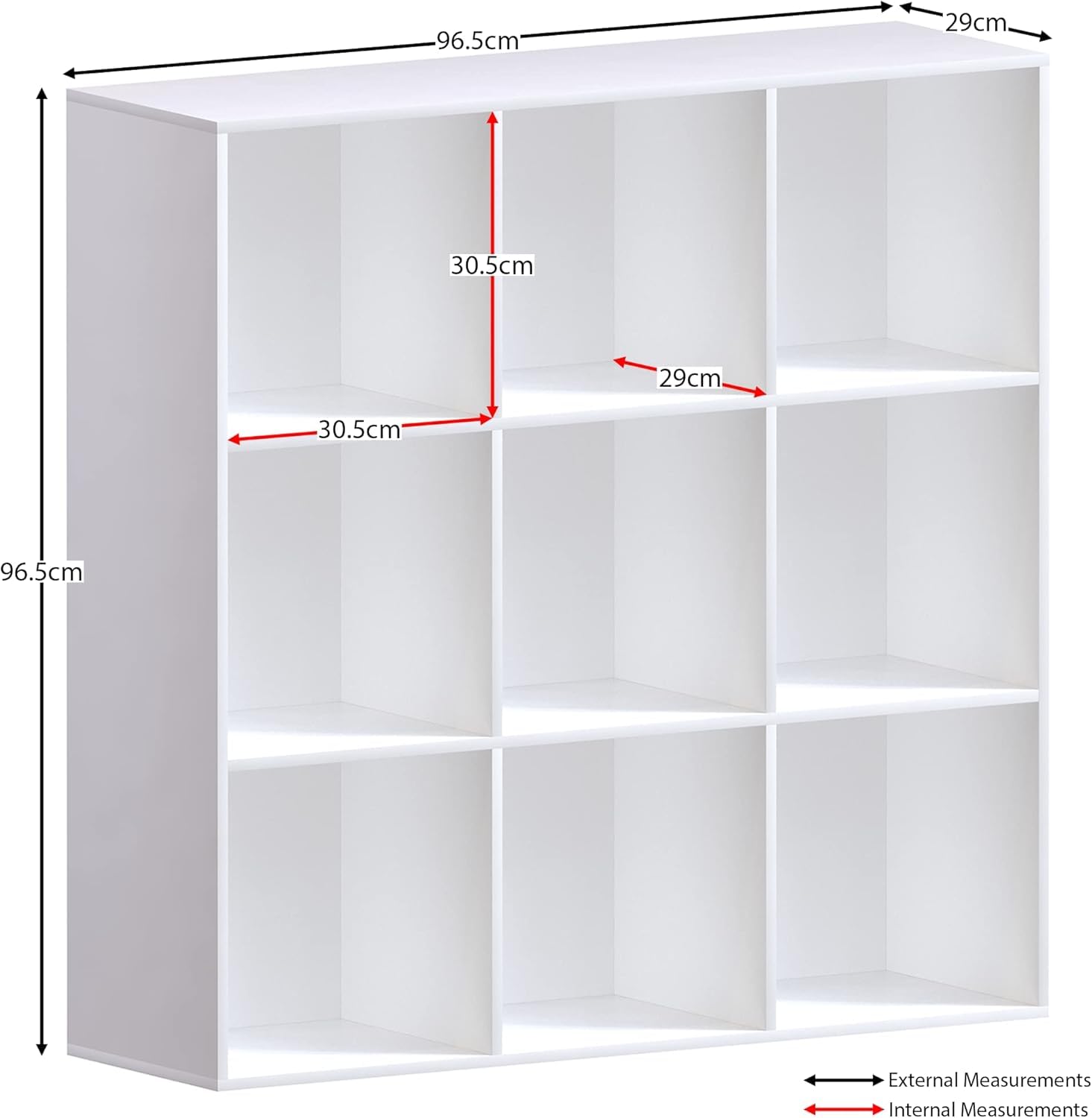 9-Cube Bookcase in White, Large Storage Organizer and Shelf for Living Room, Manufactured Wood Freestanding Unit for Home and Office, Versatile Display and Organization System