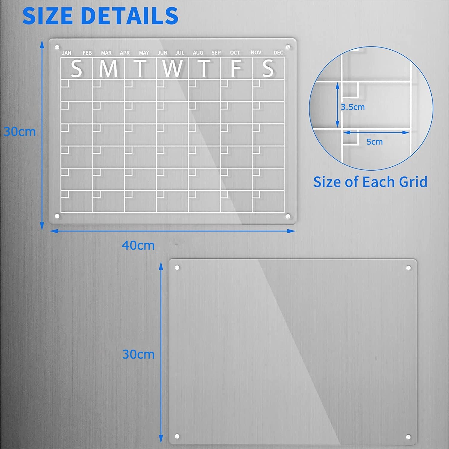 Acrylic Magnetic Dry Erase Board and Calendar Set, Clear Fridge Organizer with Markers and Pen Holder, 40 x 30 cm, For Planning Notes and Schedules, Set of 2
