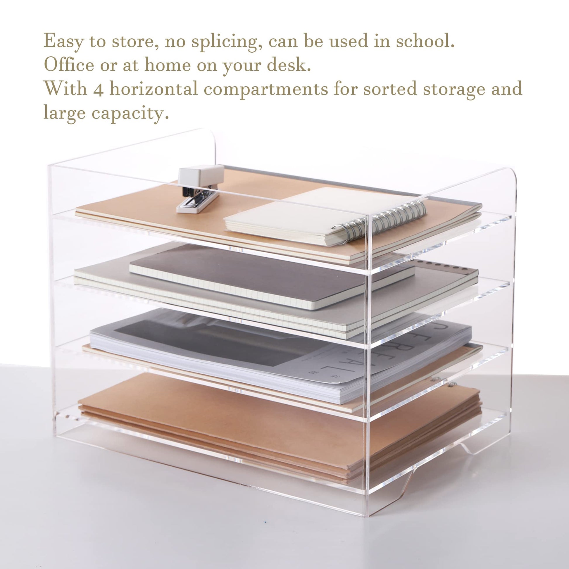 • Acrylic 4-Tier Paper Organizer Tray: Designed with four enlarged clear tiers for organizing documents, letter-size papers, folders, and office supplies. Helps maintain an organized desk in office, home office, classroom, or study areas.