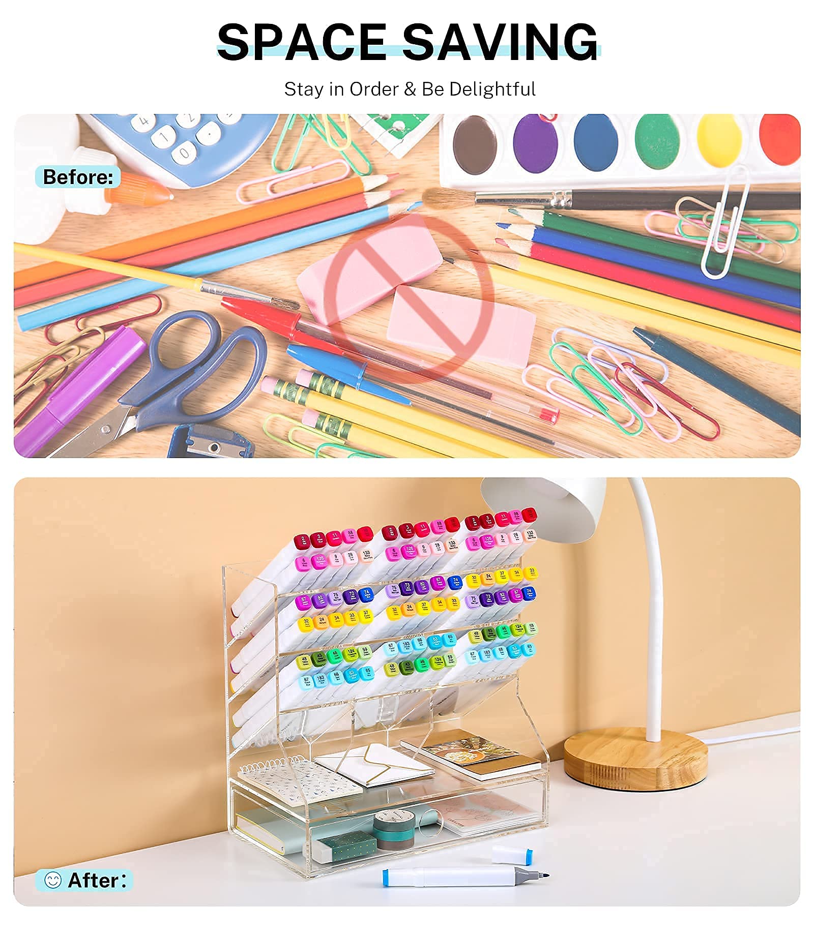 • Integrated Storage Drawer: Features a smooth-gliding, full-width drawer at the base, perfect for storing small, easily lost items such as erasers, lead refills, USB drives, and paper clips neatly out of sight.