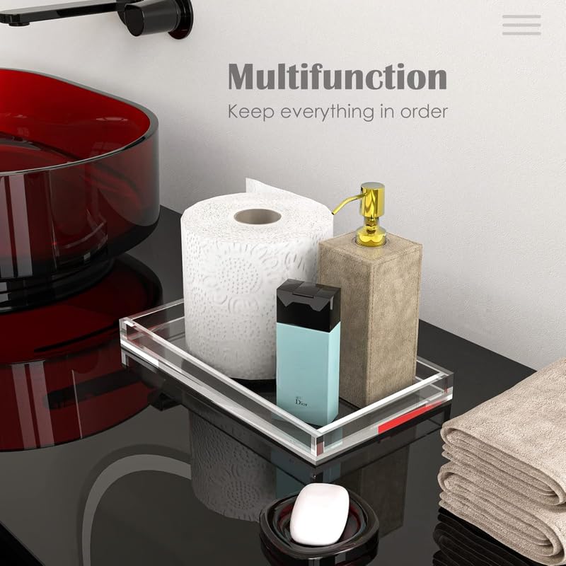 Acrylic Vanity Tray, Thick 8mm Clear Organizer Tray, 26.7 x 15.2 cm, for Bathroom Countertops, Dressers, Perfume, Jewelry, Soap, Small Decorative Tray for Home, Clear