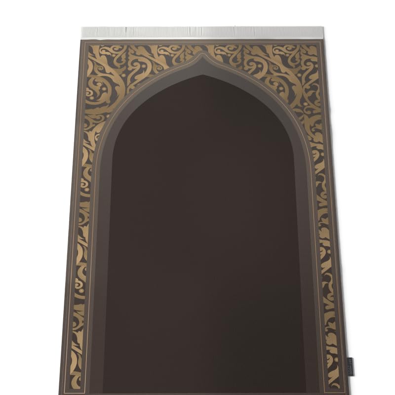 Al-Hedaya Velvet Prayer Mat, a Luxurious Islamic Rug in Brown from Soft Velvet Material, 68x117 cm, for Comfortable Prayer, Ideal as a Salah Mat for Home, Mosque, or as a Travel Janamaz
