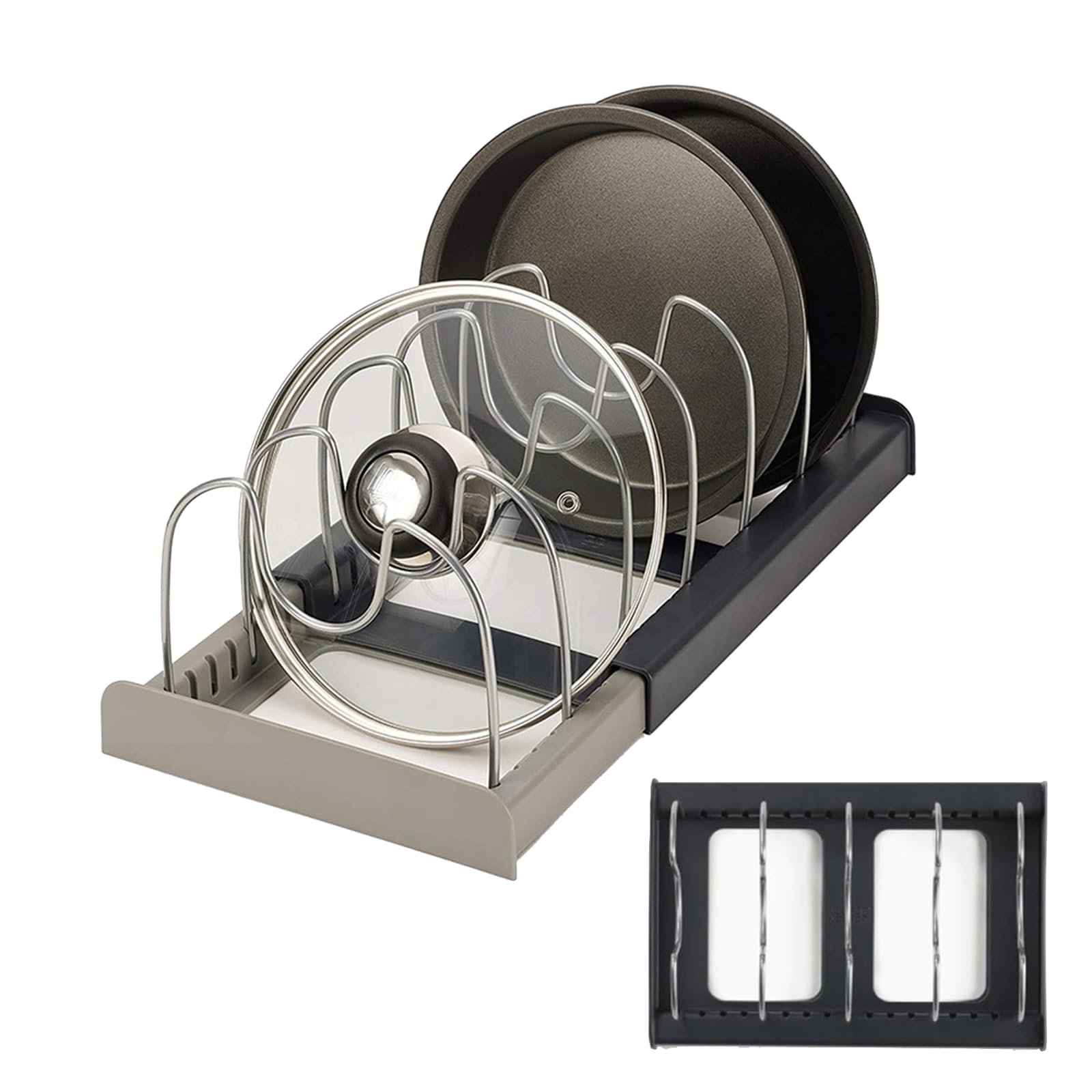 ALLWYOU Adjustable Pan Lid Holder with 7 Adjustable Compartments Pot and Pan Lid Organiser Rack Holder Expandable Tray Bakeware Storage Rack Dish Drying Rack Kitchen Cupboard Drawer Organiser