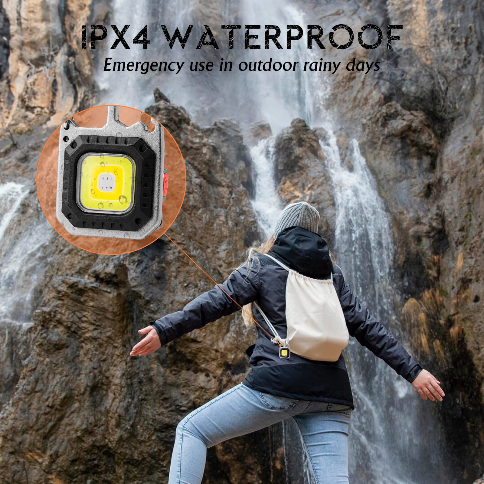 • 💡 【Super Bright Pocket COB Light】- This Mini rechargeable flashlight keychain is powerful enough to emit 800 lumens lights. COB light source technology can provide bright light from multiple wide angles, which can be used as a small work light and emergency light. Thickened alloy material casting makes the light more sturdy, and can be applied to a variety of outdoor environments.