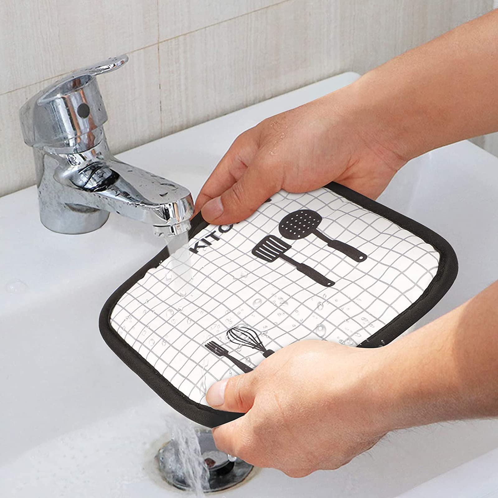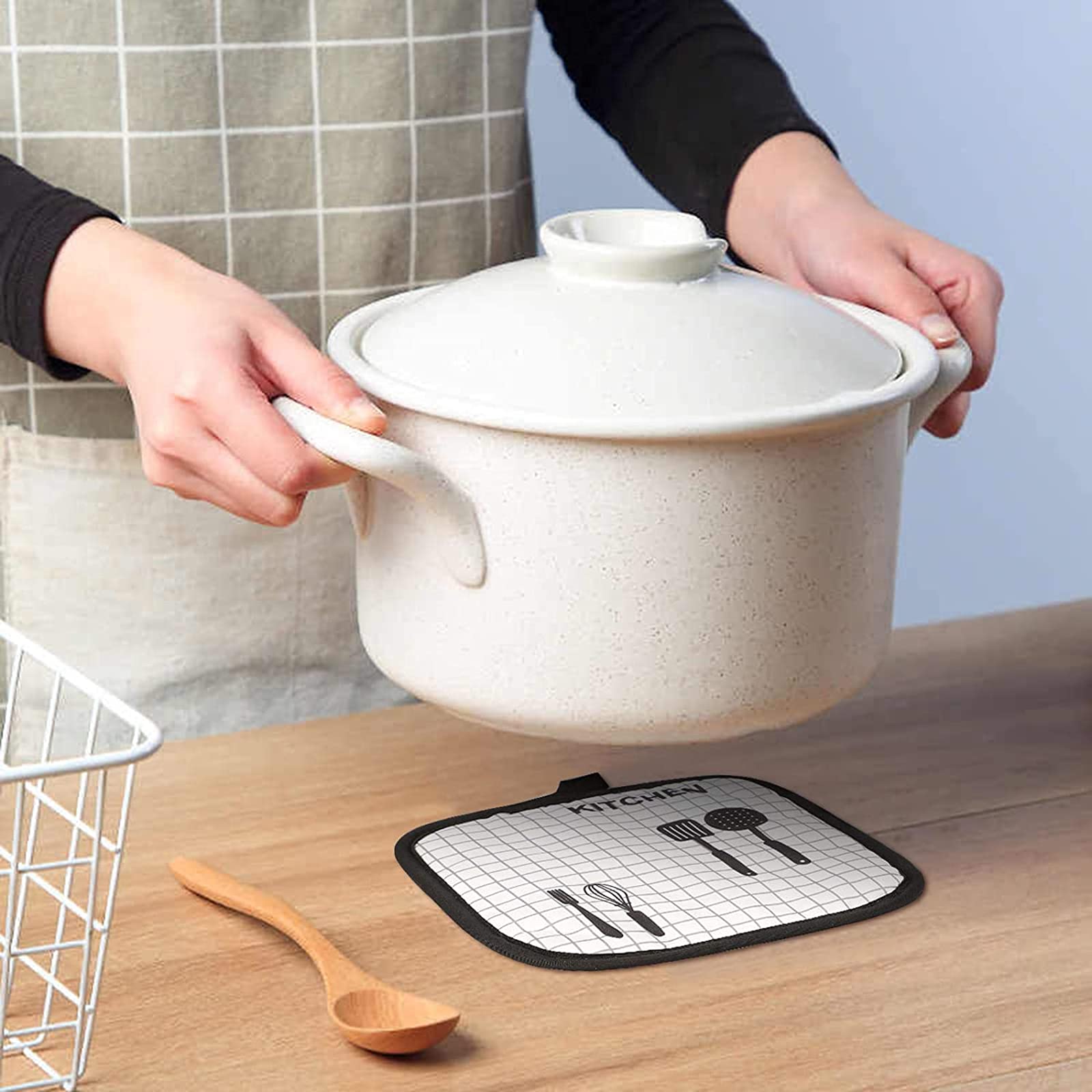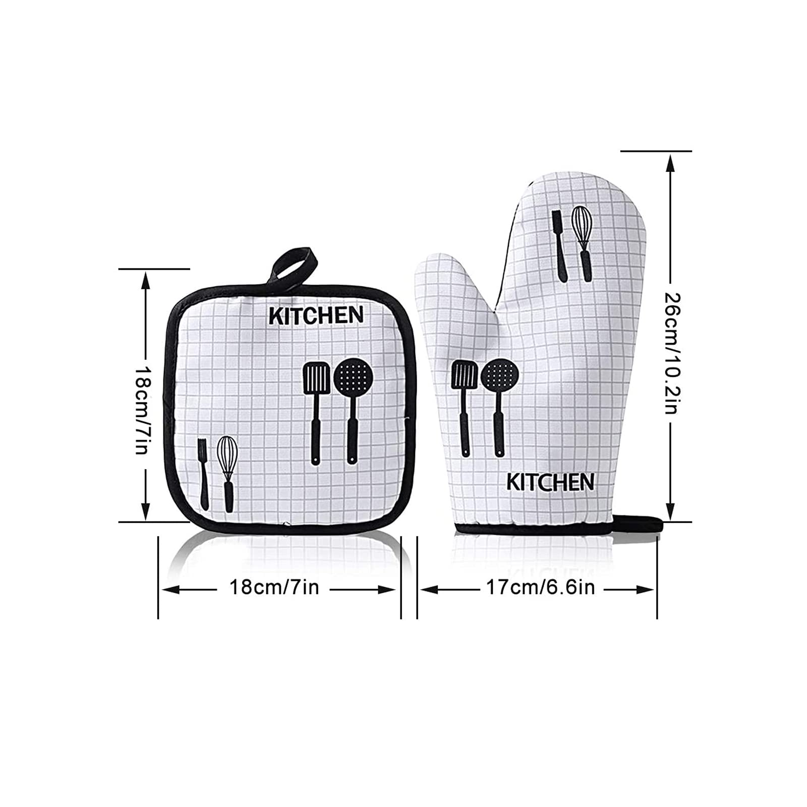 • Non-slip design: the cotton body pattern and knitted design on the oven glove and pot holder provide a secure non-slip grip when holding pots and pans. The oven gloves offer ideal extra protection for the hands from very high heat thanks to reinforced material.
