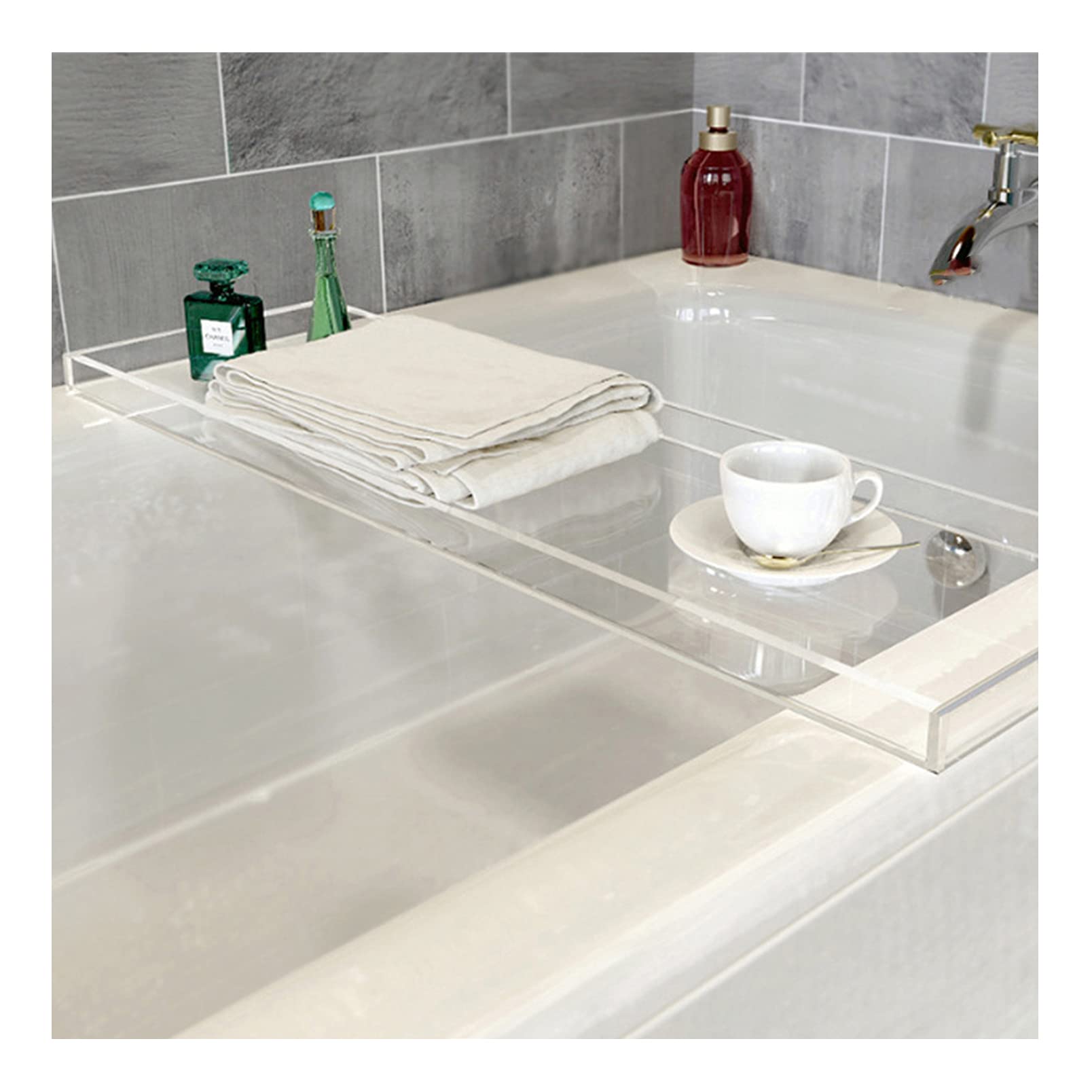 Bathtub Tray Caddy, Luxury Acrylic Bath Tub Shelf and Organizer, 82 x 20 cm Spa Tray with Tablet Holder, Perfect for Holding Books, Candles and Bath Essentials, Relaxation Accessory, Clear