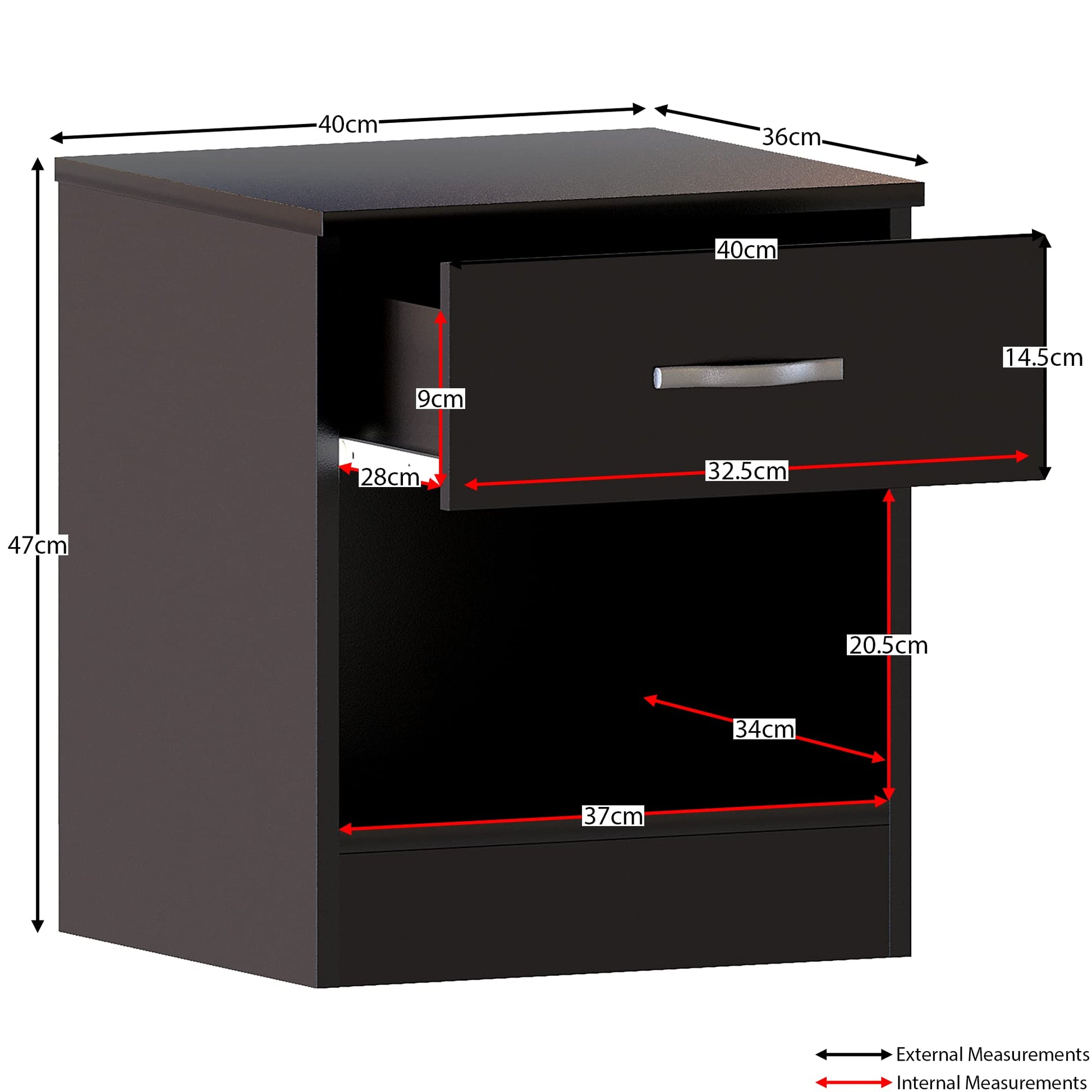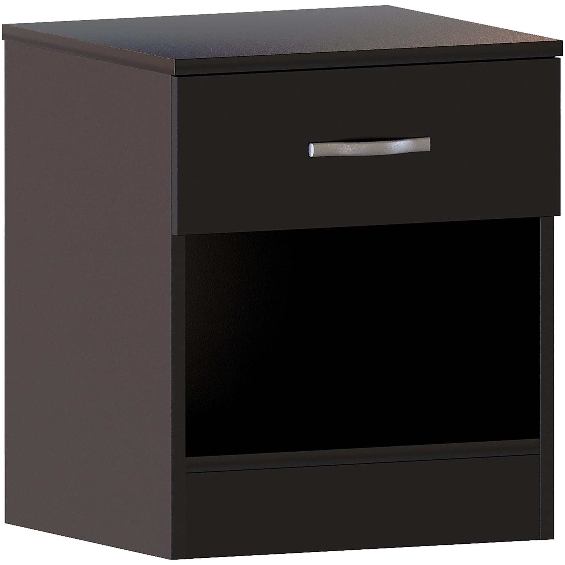 Complete your bedroom with this sleek and functional bedside table. Featuring a single smooth-gliding drawer and an open lower shelf, this nightstand provides the perfect blend of concealed and open storage. The classic Black finish offers a timeless look that complements any bedroom decor, from modern to traditional. It’s the ideal spot to place a lamp, your phone, and a glass of water, while the drawer keeps your nighttime essentials neatly tucked away and out of sight.
