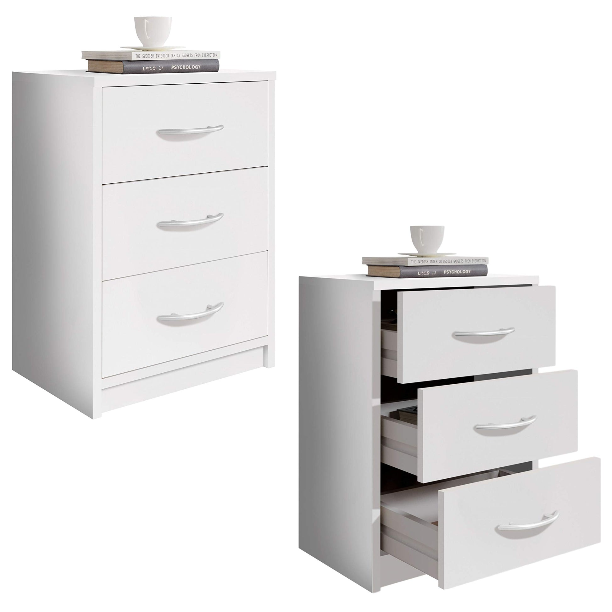 Bedside Table with Three Drawers, a Simple and spacious Bedside Cabinet for any Bedroom, W39 X H54 X D28 cm, presented in a Clean and Classic White Finish