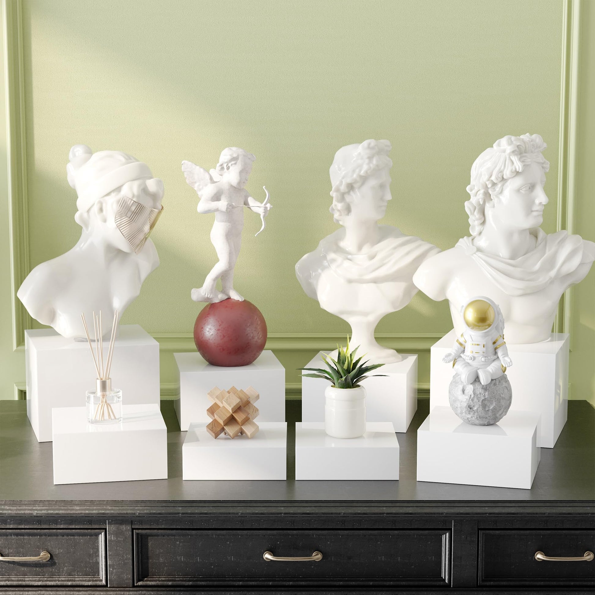 • Complete 2-Set Riser Collection: Includes two full sets of acrylic cube display risers with four graduated sizes (15 x 16.5 x 18 x 20 cm), perfect for buffet tables, dessert presentations, jewelry displays, and showcasing collectibles with elevated style.