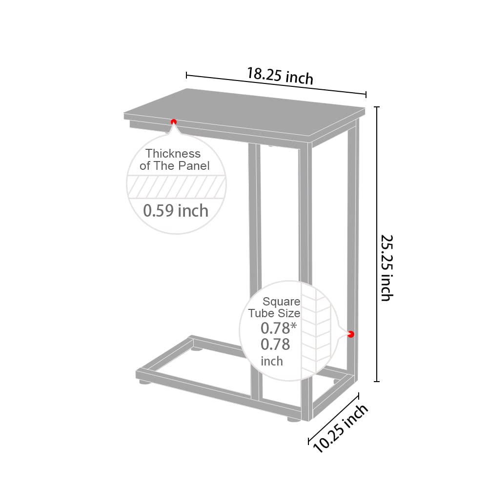 Chrome Accent Metal Base C-Table for Living Room Bedroom Balcony Family and Office and More Keep Snacks, Drinks, Books and Phone at Easy Reach