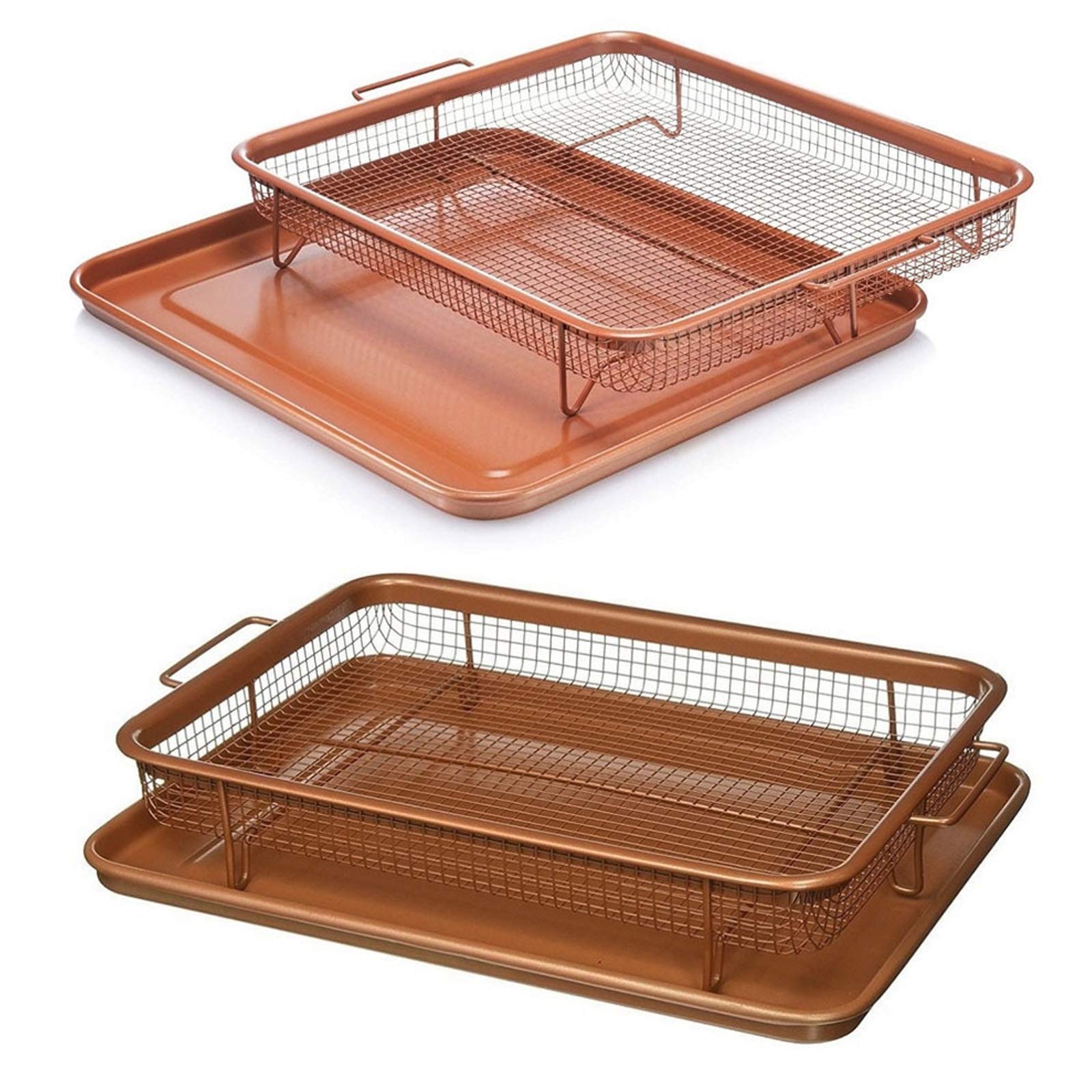 CircleM Non-Stick Mesh Frying Pan, Copper Coated Stainless Steel Grill Oven Tray for Healthy Cooking, Suitable for Wings, Potatoes, Crispy Vegetables