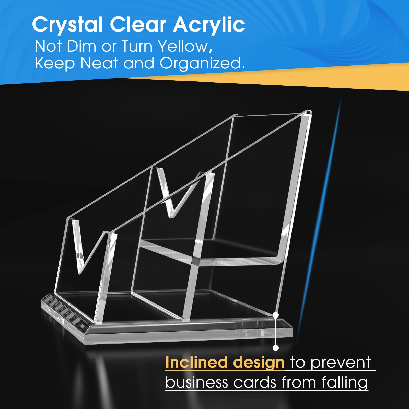 Clear Acrylic Business Card Holder, 2-Tier 2-Slot Display Stand, Holds up to 120 Cards, Desktop Name Card Organizer for Office and Exhibitions