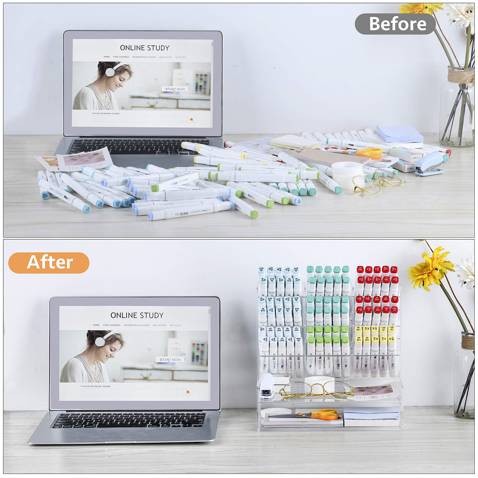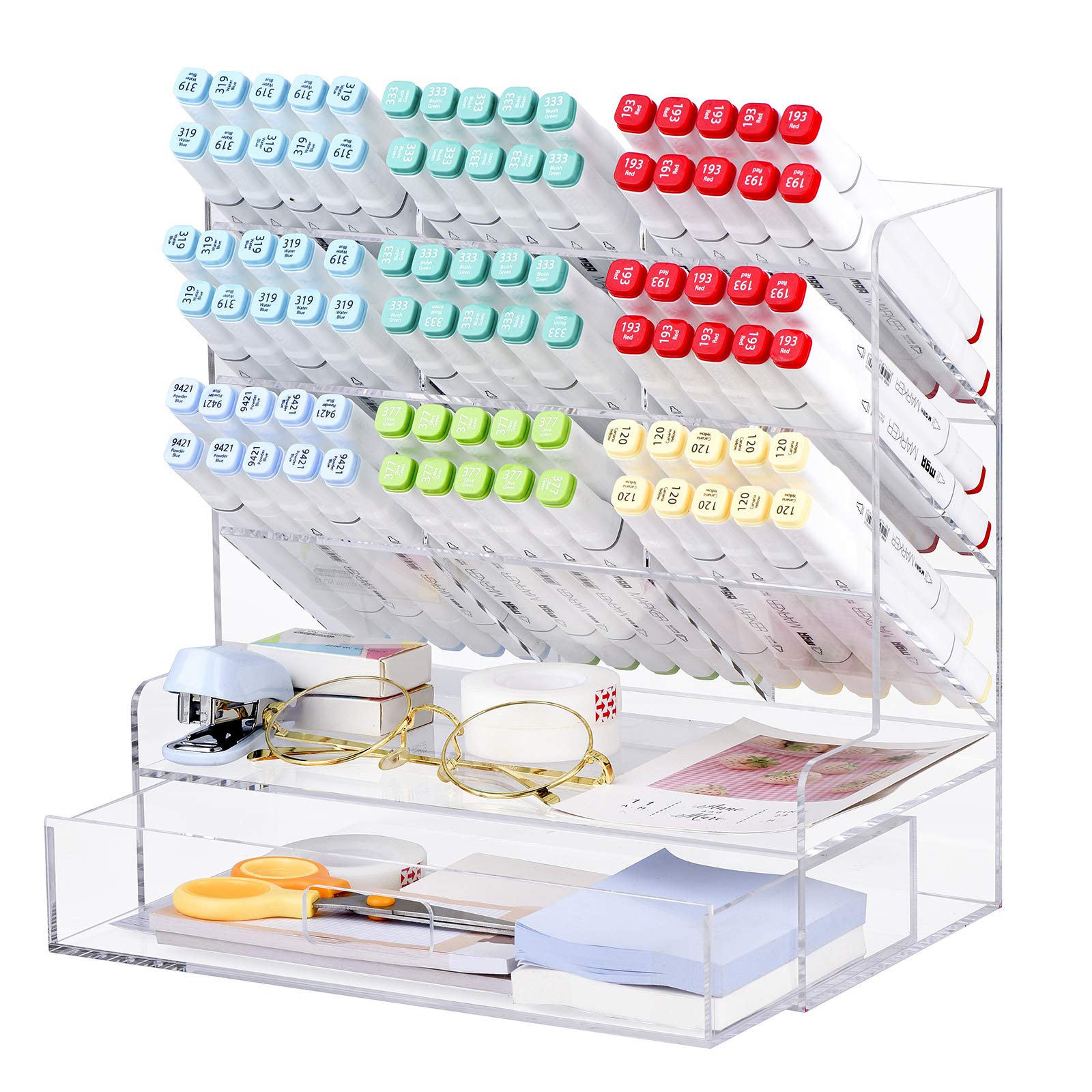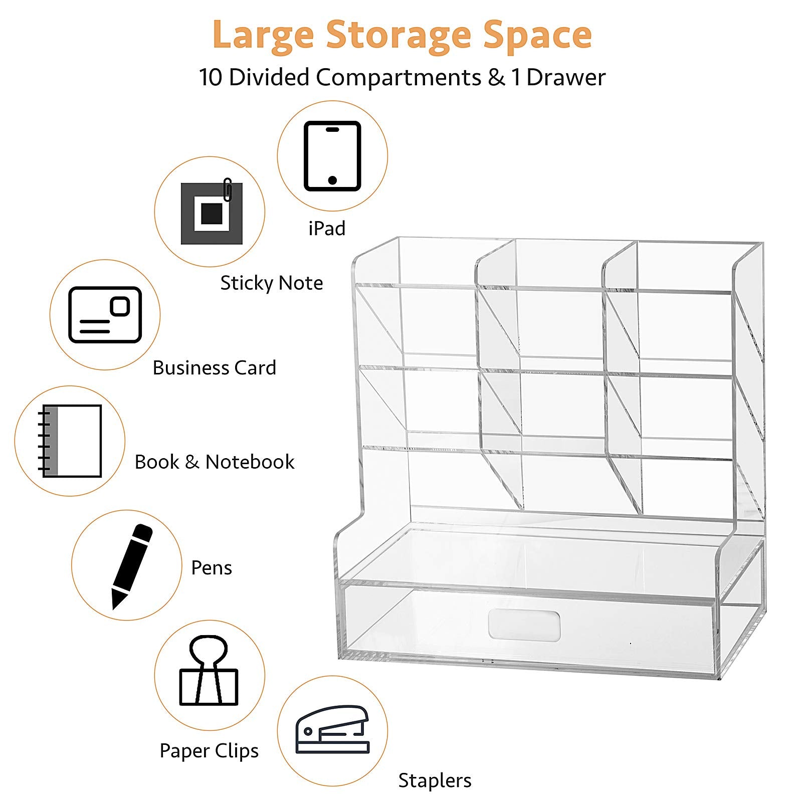 • Premium See-Through Acrylic: Made from high-quality, durable, and crystal-clear acrylic, this organizer not only looks great on any desk but is also built to last, resisting cracks and scratches from daily use.