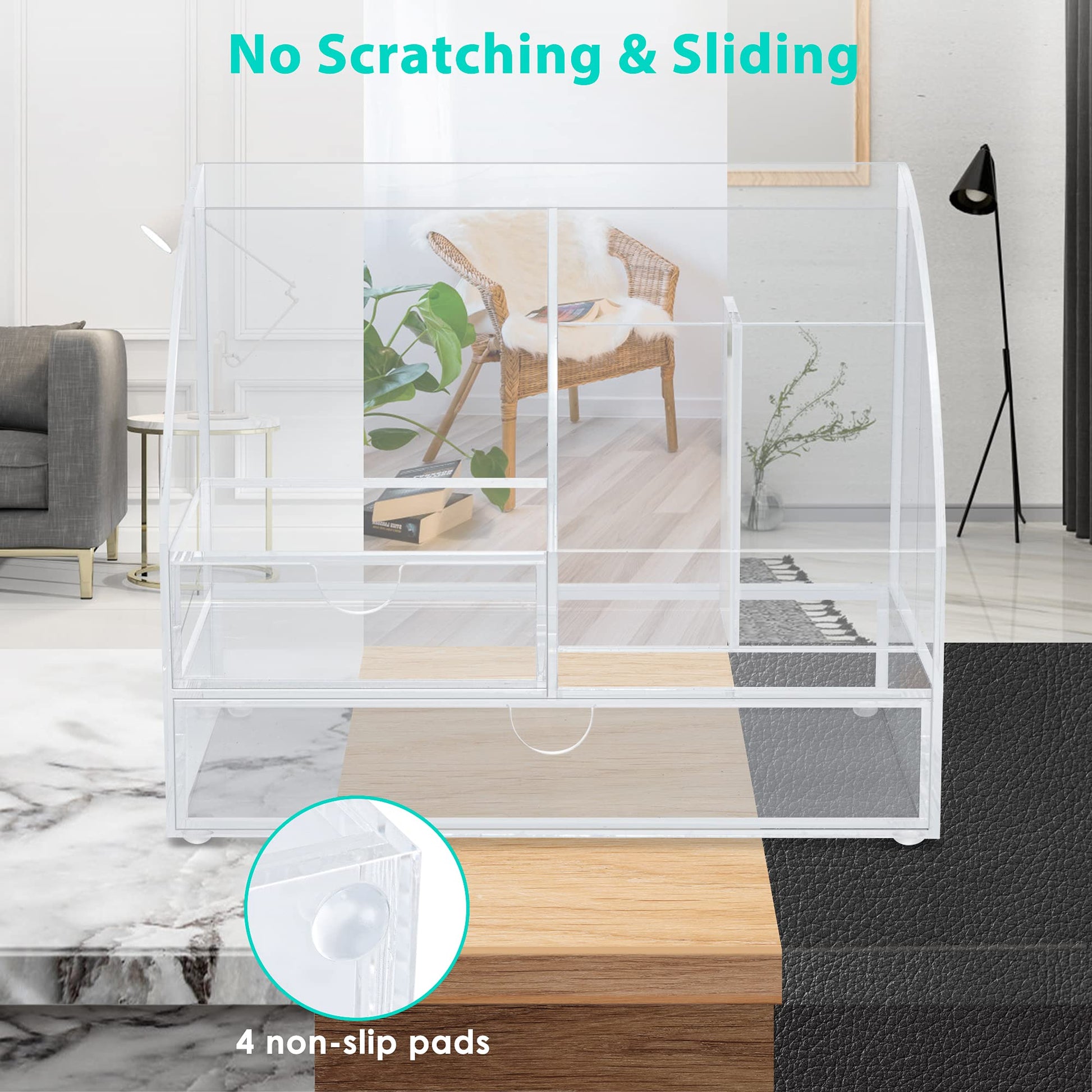 • High-Grade Crystal-Clear Acrylic: Constructed from thick, durable, and transparent acrylic, this organizer combines a modern aesthetic with robust functionality, ensuring it remains a staple on your desk for years.
