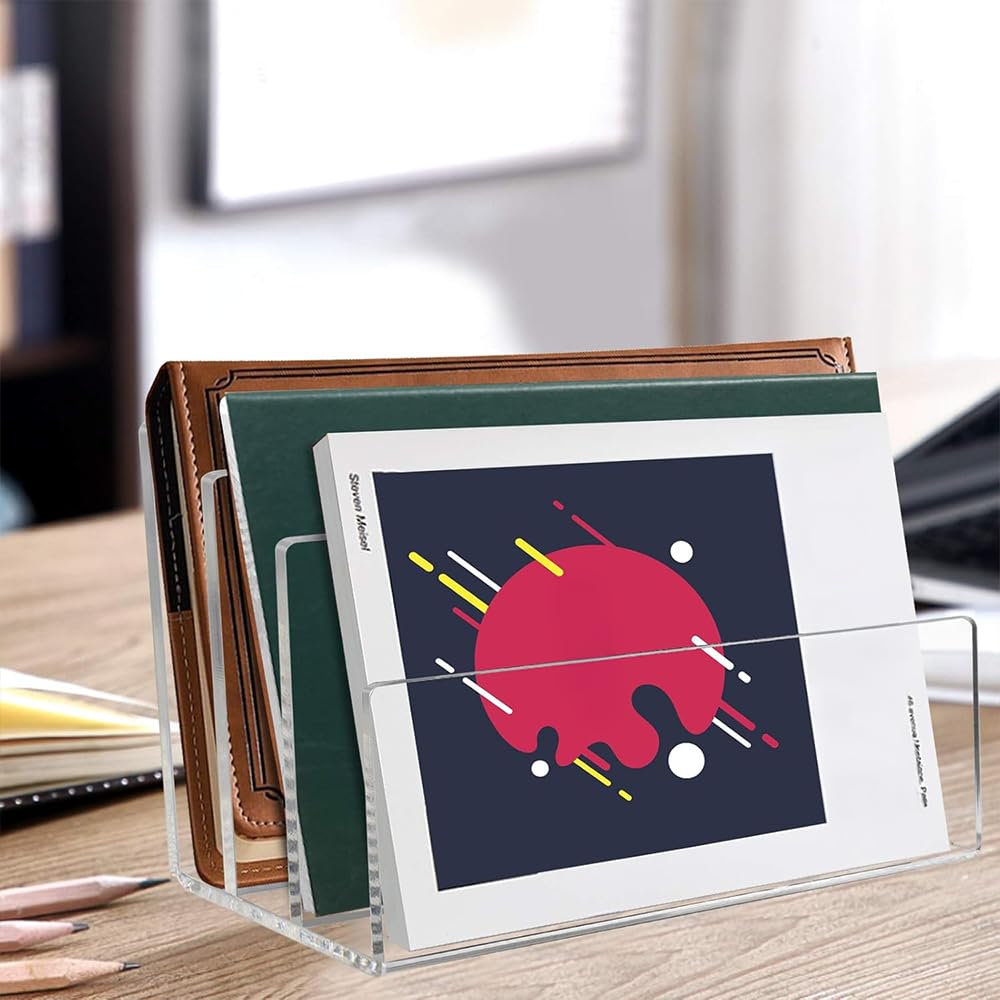 • Efficient 3-Section Organization: Features three spacious vertical compartments to neatly store and categorize your files, letters, documents, and magazines, keeping them upright and easily accessible on your desk.