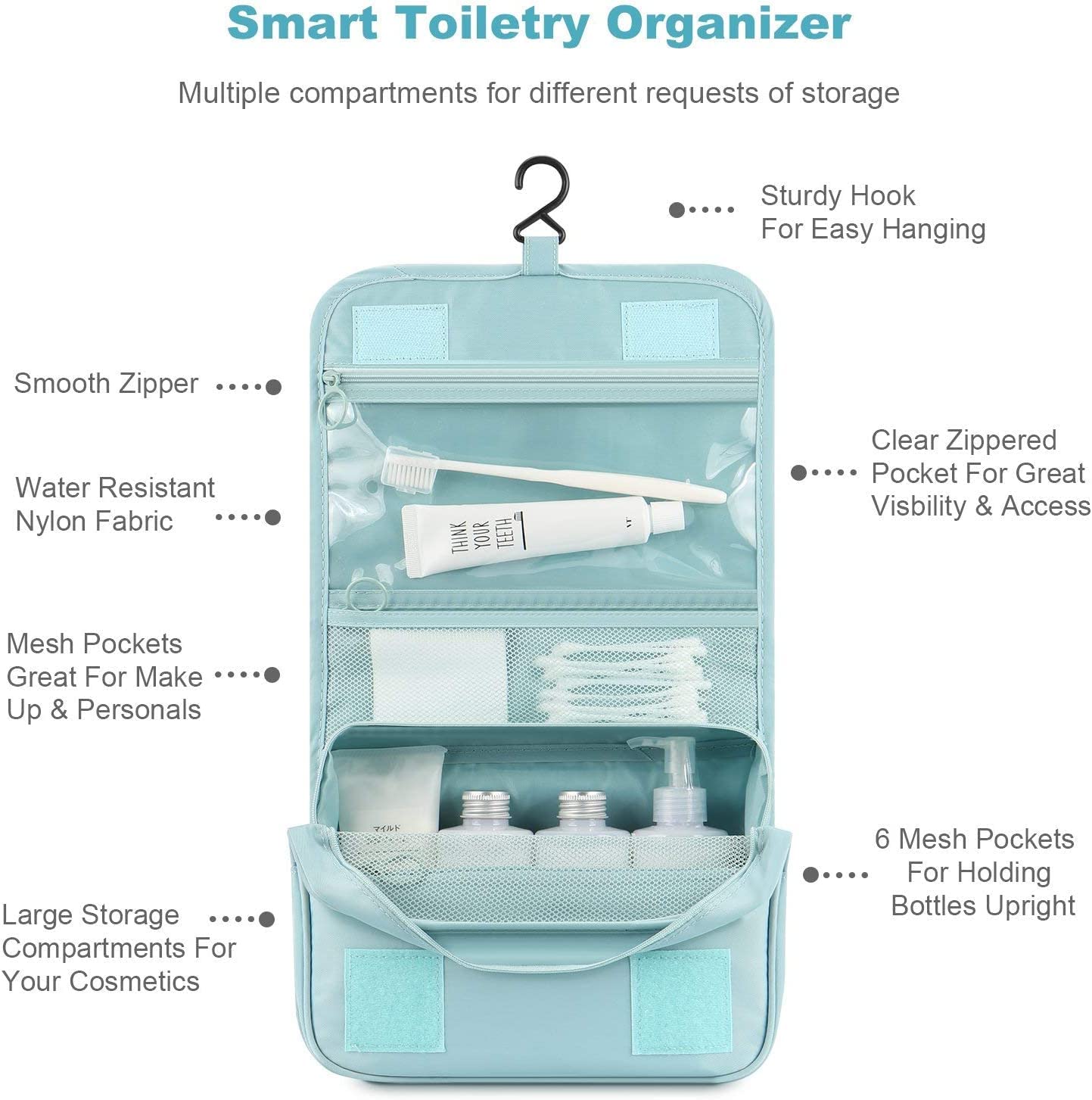 • 【Portable & Light weight】- This lightweight travel toiletry bags is in medium size with large capacity yet compact design, weighing only 7 ounces so that it never looks bulky. Pack it flat design makes it not to take up too much room in your suitcase so it's quite portable while on your long-term trip with your families, lovers and friends.