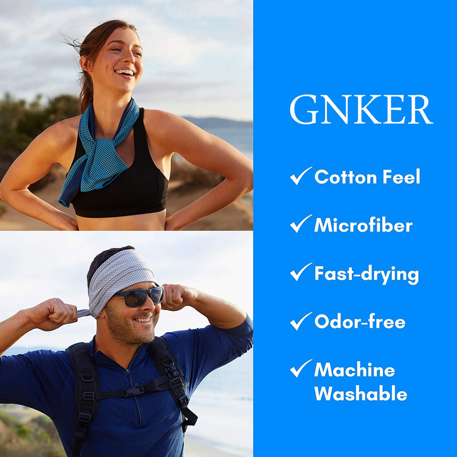 • PREMIUM QUALITY MATERIALS - Gnker 6 Pack 30 x 80 cm cooling towels are made of fine-quality Microfiber Blend of 45% Polyester 55% Nylon. This material ensures maximum durability and comfort during Gym, Workout, Sport, Work, Travel & Camping