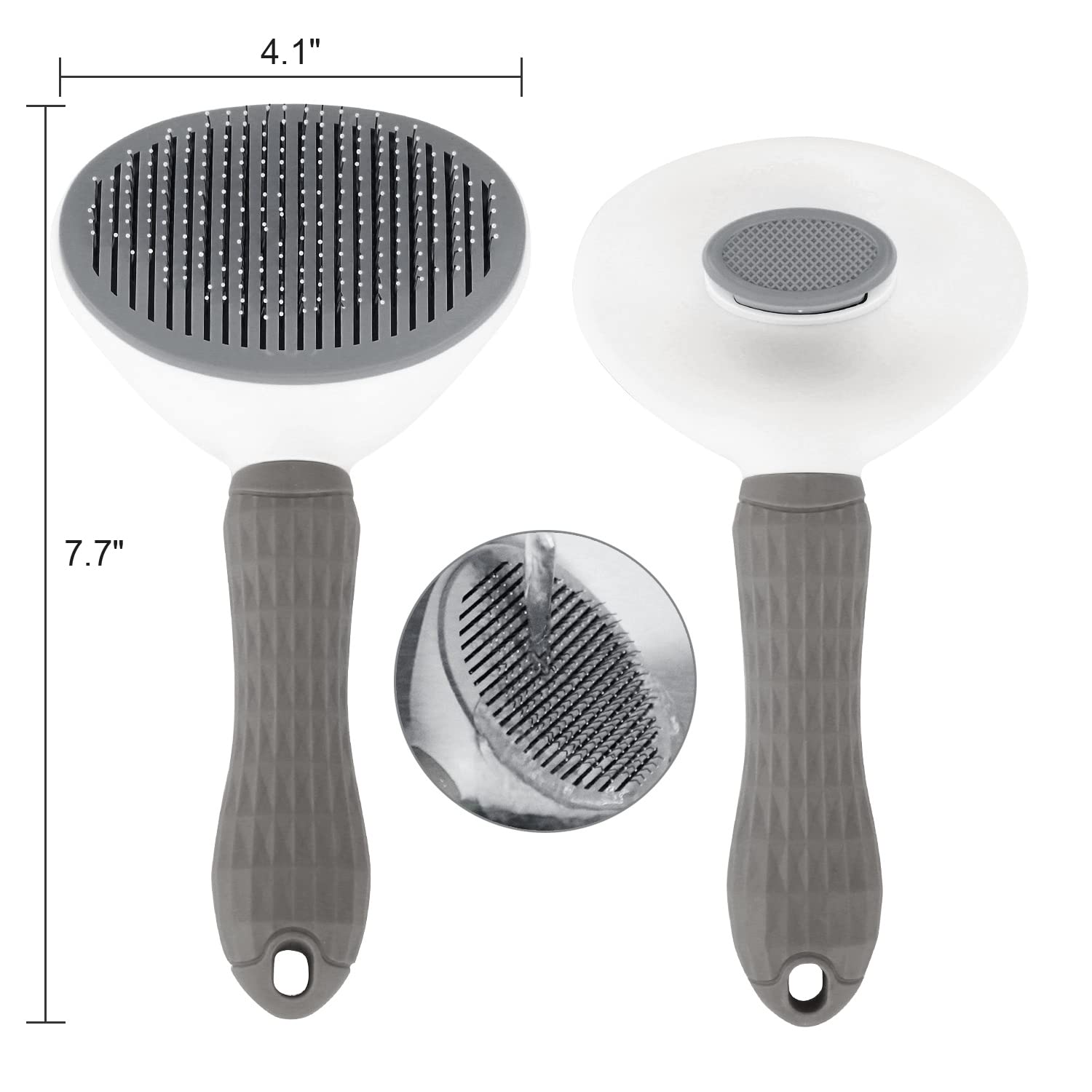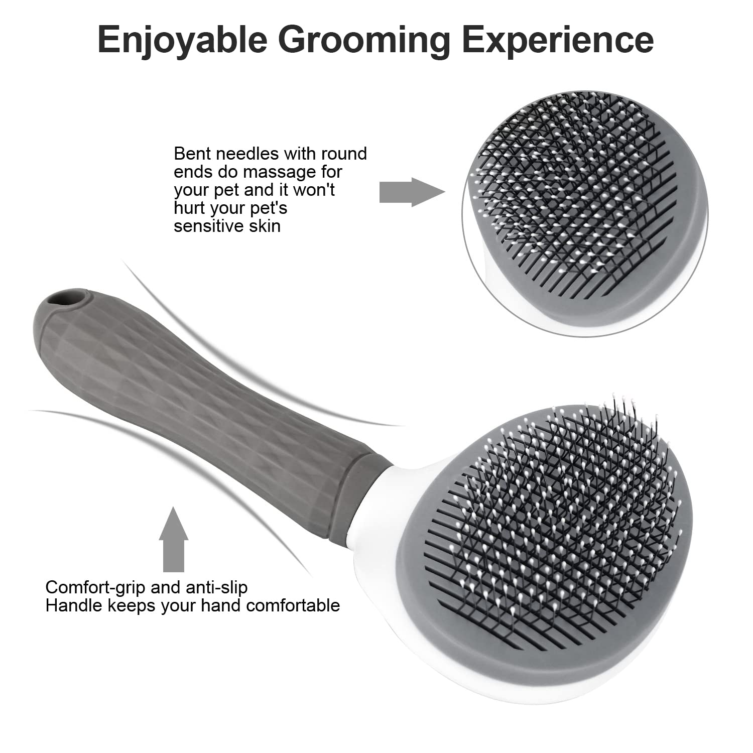 Depets Self Cleaning Slicker Brush, Dog Cat Bunny Pet Grooming Shedding Brush - Easy to Remove Loose Undercoat, Pet Massaging Tool Suitable for Pets with Long or Short Hair Gray