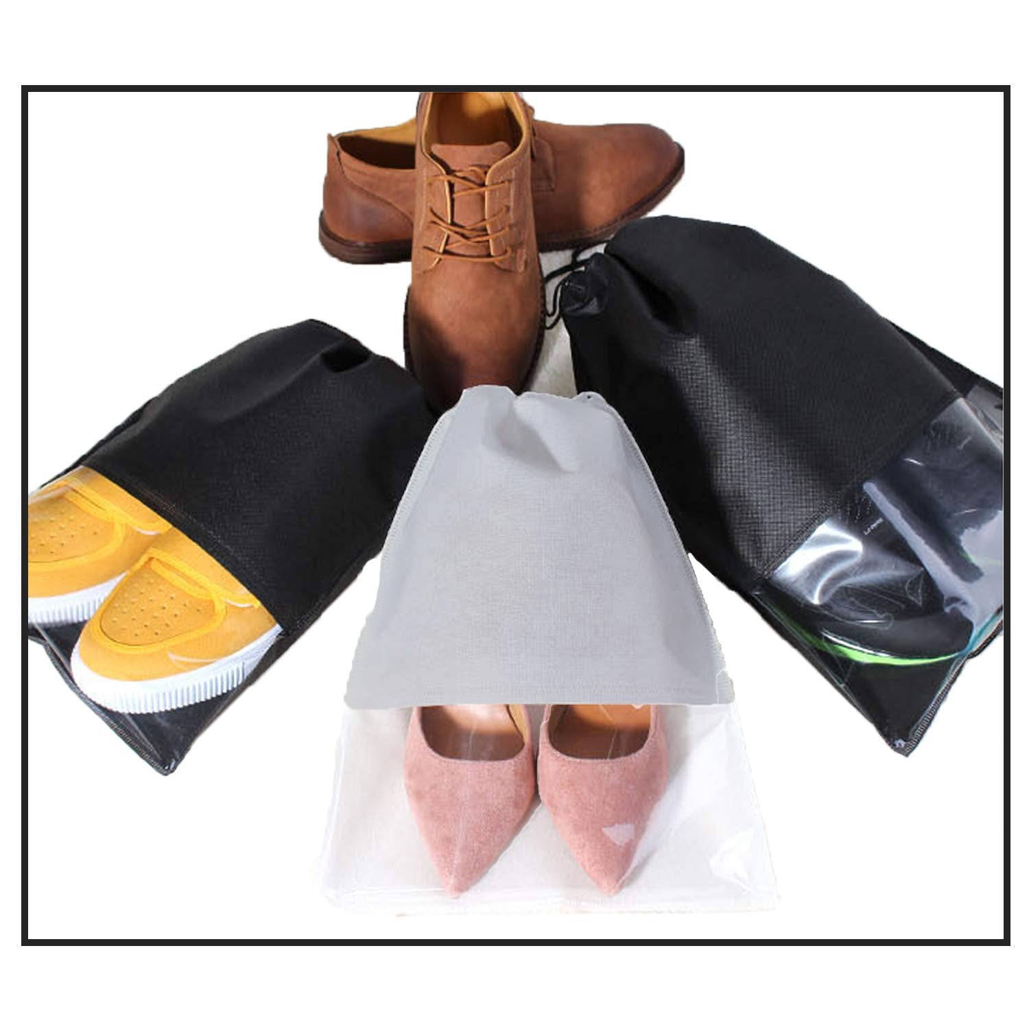 DWTECH 15 Pieces Travel Shoe Bag for Men and Women, Large Non-Woven Drawstring Shoes Storage Bags with Transparent Slot for Ladys, Black, 44cm x 32 cm/ 17.3 inch x 12.6 inch