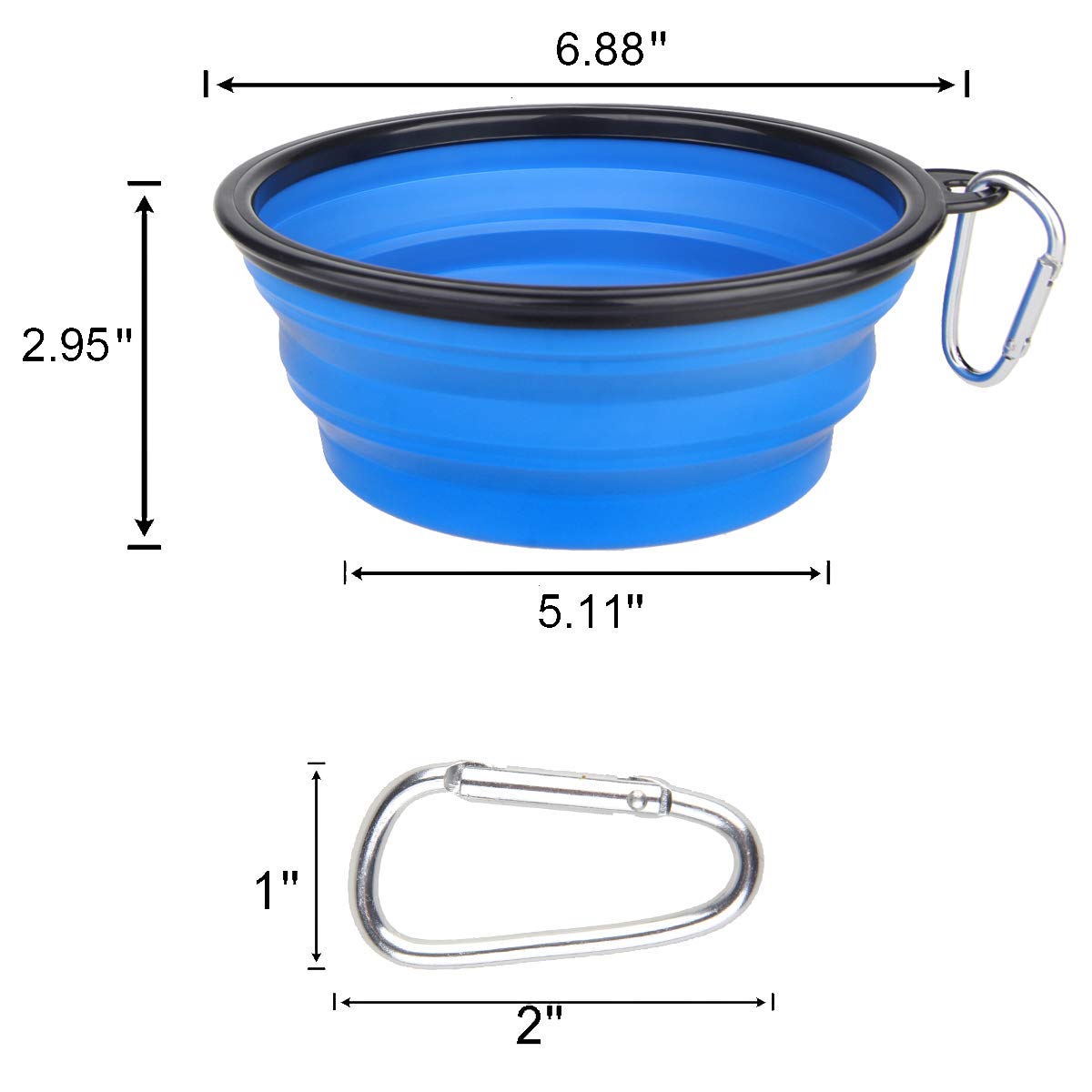 ECOSCO Collapsible Dog Bowl with Carabiner Clip (Blue/Green/Yellow, Pack of 3, Large)