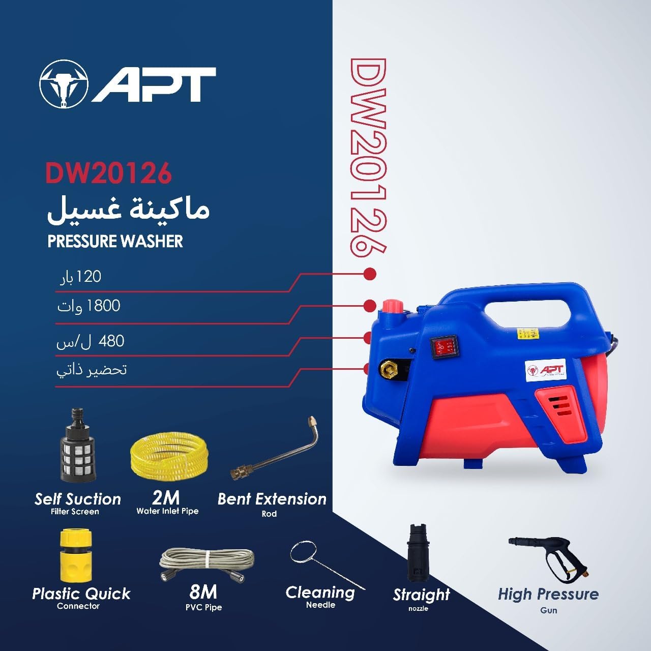 Electric Pressure Washer With 8 Meter Hose Lightweight,For Car, Home Garden,Air Conditioner 120 Bar 1800 Watt By Circle Tools