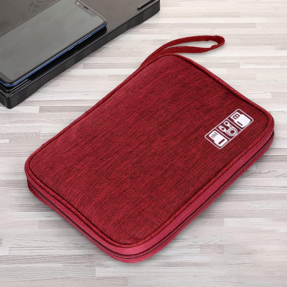 Electronic Organizer Travel Cable Organizer Bag Digital Accessories Storage Case with Dividers for Hard Drives, Portable Charger, Cables, Phone, USB, SD Card(Wine Red)