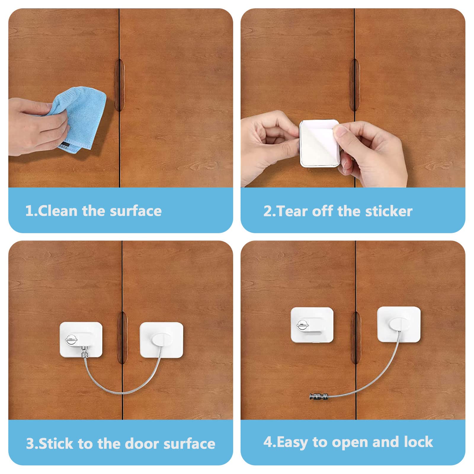 • Easy to Install: Our refrigerator door lock Item Comes With 2 x refrigerator door locks and 4 x Release Keys, Easy Installation.Clean the wall and paste it directly. (It is not recommended to paste on incomplete surfaces such as oil stained surfaces, leather surfaces, and wall peeling surfaces)