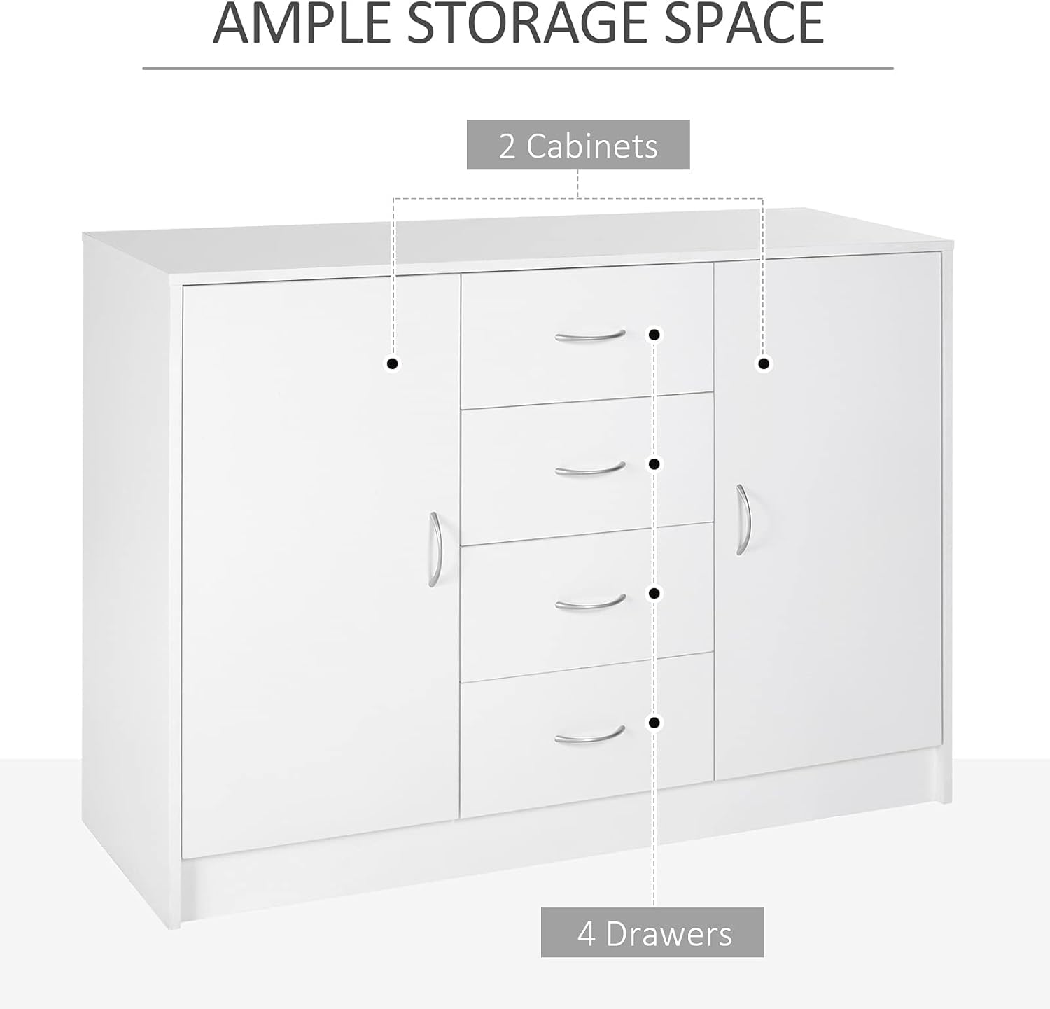 Freestanding Sideboard Cabinet with 2 Doors and 4 Drawers, Versatile Organizer for Kitchen, Dining, or Living Room in a Clean White Finish with a Modern Minimalist Style