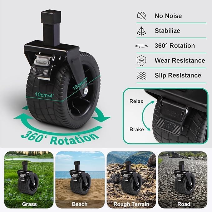 Generic Folding Wagon, Portable with W Heels, 150kg Beach Wagon, Wide Big360 Wheels & Outdoor, beach, camping, shopping, pets for Family, Mom, Dad - Green, Black