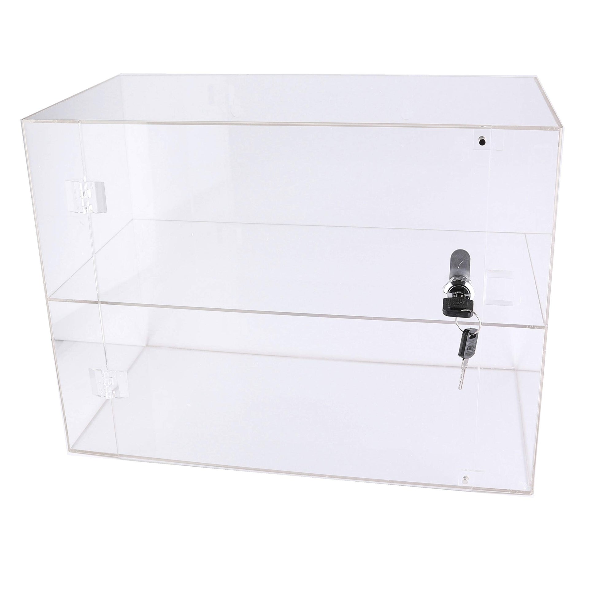 High Gloss Clear Acrylic Display Case with 1 Shelf and Front Door with Security Lock for Collectibles Office Home Store Display Stand