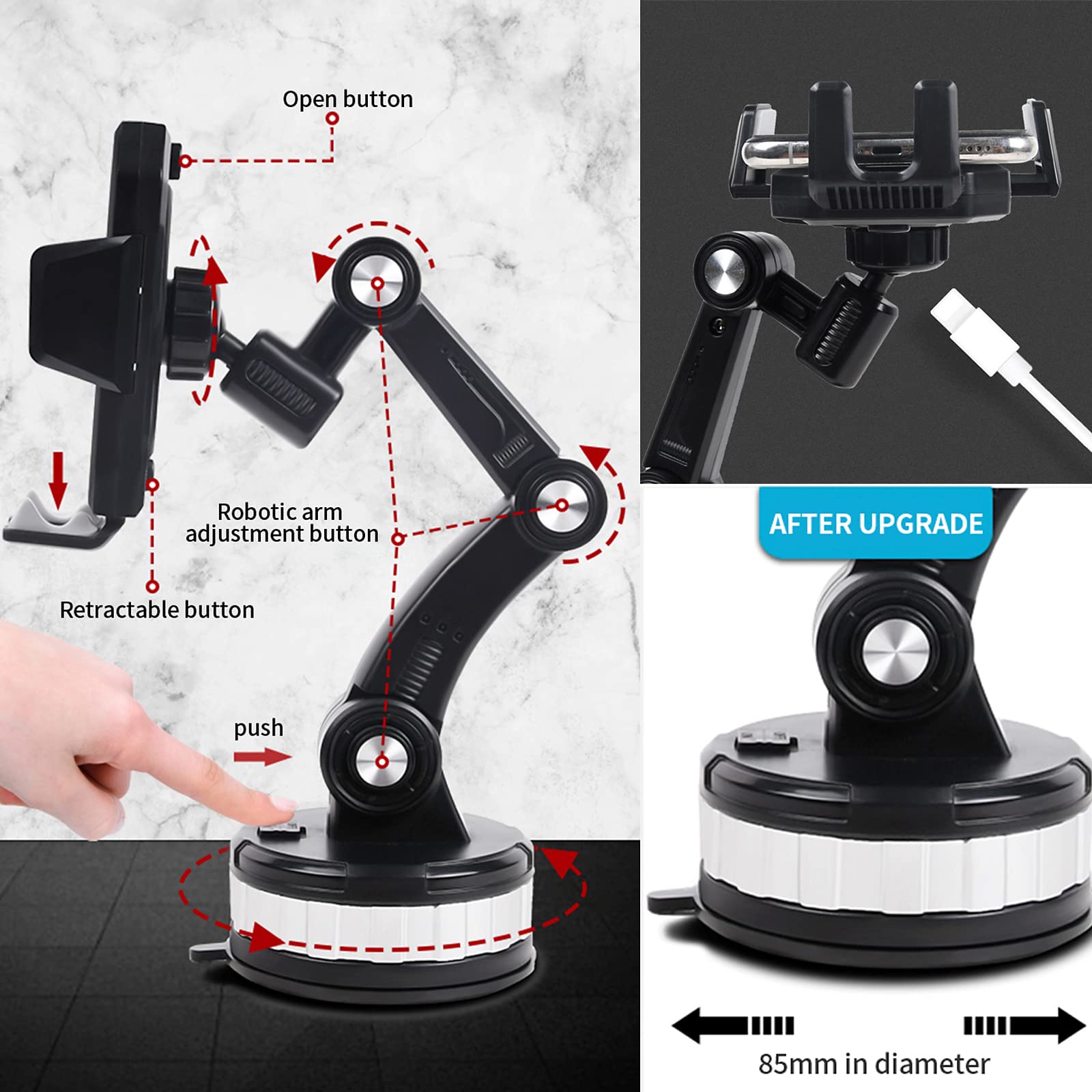 • 【Quick One-Button Release】:Just press the release button on the back of the phone cradle, clamp arms will smoothly slide to release your device, you can easily remove your phone with one hand