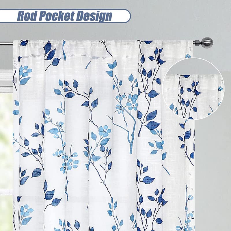 INtex CURTAINS HOUSE Rich Natural Linen curtains - Printed floral curtains- Semi-transparent - Road Pocket grommets for living room, bedroom, kitchens, 1 piece 150 * 210 Navy Blue/Blue