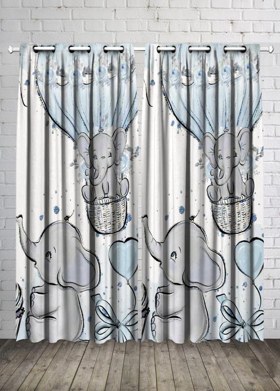 INtex CURTAINS Kids Room Elephants and Balloons Baby Boy Curtain -Linen Velvet Fabric -Privacy - Steel Grommets - 2 Pieces 135W x 240L CM