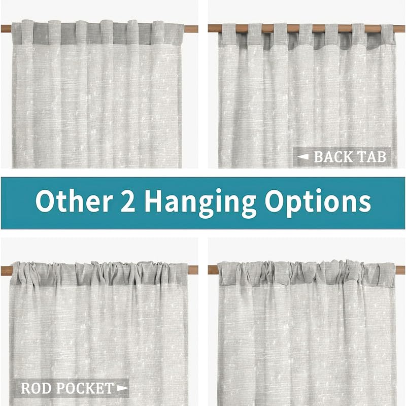 - Two Hanging Options for Versatile Styling: Designed with both back tab and rod pocket options for flexible installation,choose a tailored or gathered look to match your space and curtain rod style.