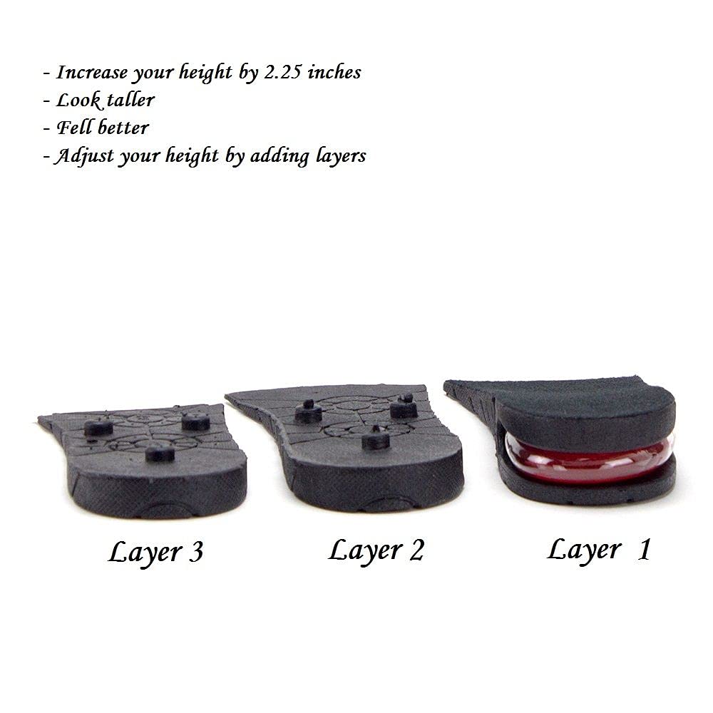 Jazame Height Increase Insoles for Men & Women - 3-Layer Air-Up Elevator Shoes Lift Kit - Arch Support - Black - Unisex Adults