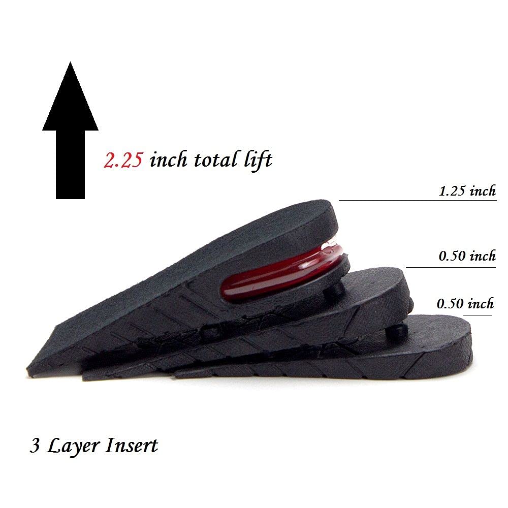 • Experience the innovative 3-layer air-up design that elevates your height by 2.25 inches. These height increase insoles for men are perfect for those seeking a discreet boost, ensuring confidence and a taller appearance.