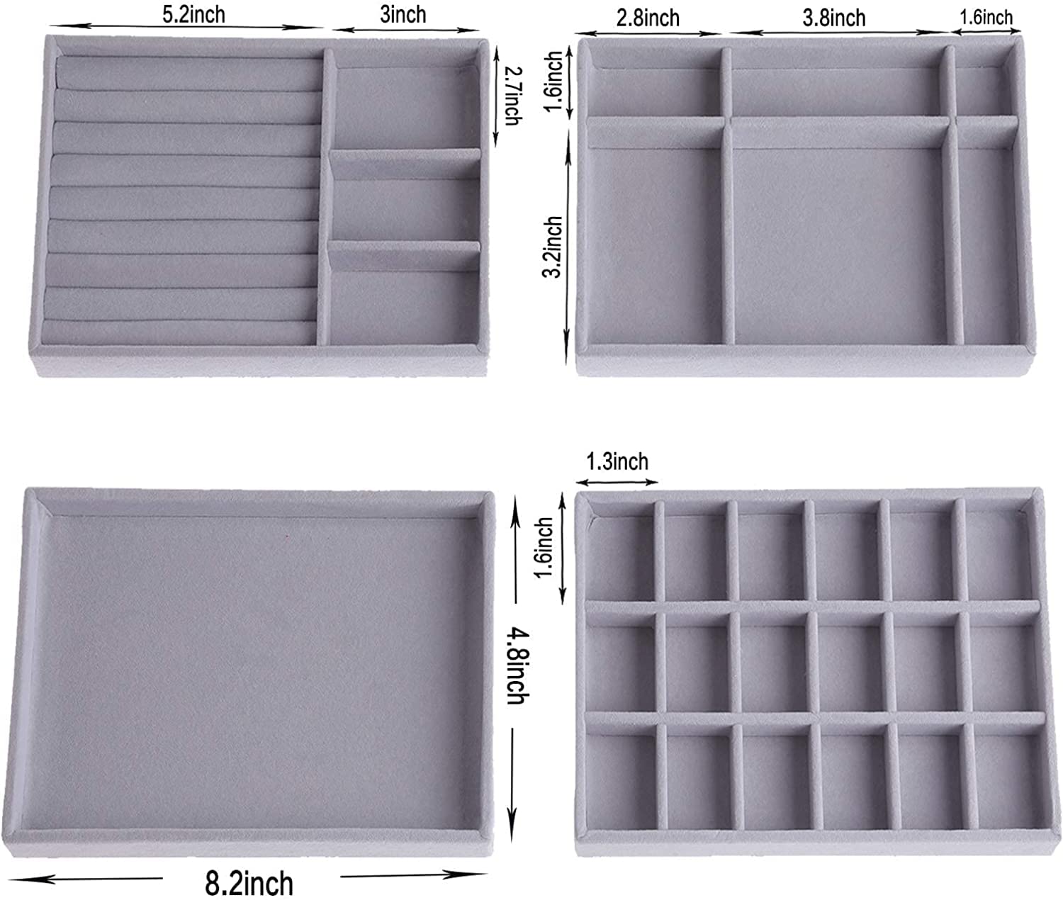 Jewelry Organizer Set of 4 Trays Organizer for Rings, Tools and Cosmetics