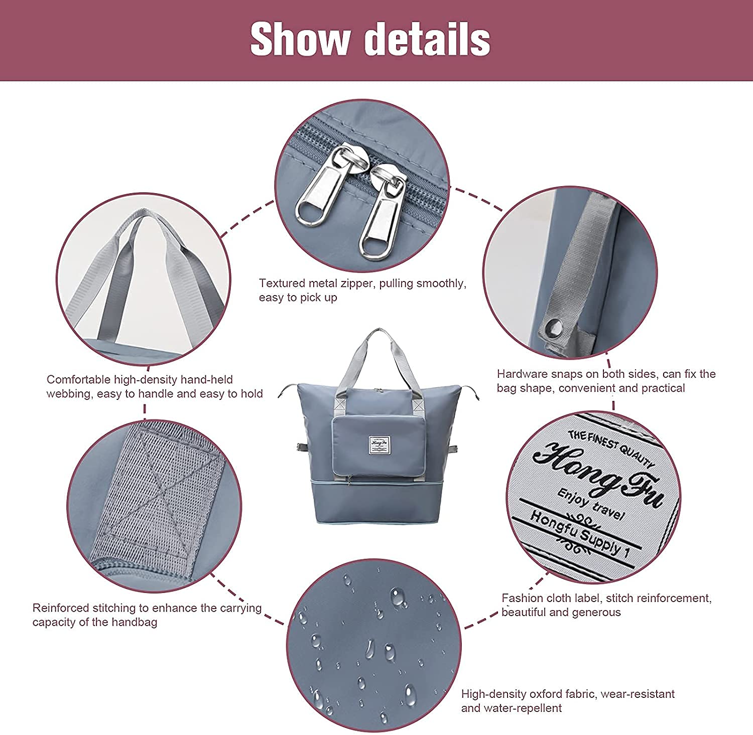 • 👍【Wide Application】 This travel duffle bag, It is a great gym sport bag, gym holdall, school duffle bag, travel duffel bag, travel holdall bag, suitable for Gym, Sports, Travel, yoga, fishing, Luggage, Shopping Bag, Beach Bag, Hiking and Camping etc. It is the perfect choice for personal items for air travel and emergency spare bags in the luggage.