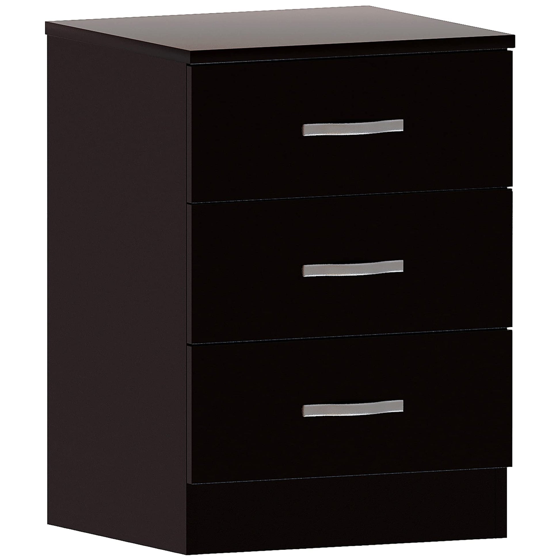 Large 3-Drawer Bedside Cabinet in Black, Chest of Drawers with Metal Handles and Anti-Bowing Support, Riano Bedroom Furniture for Ample Storage, Modern Nightstand