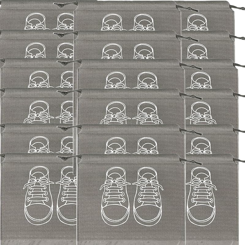 Large Shoe Storage Bags, Dustproof Drawstring Shoe Bags with Transparent Window, Waterproof Travel Organizer, Portable Shoe Pouches - Grey - 18 pieces