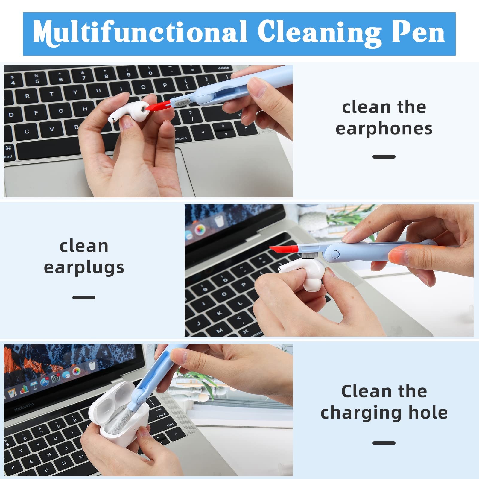 • Multifunctional cleaner: cleaning pen headphones set, the silicone tip is used to remove stubborn stains in the crevices of headphones, keys and other items. High density brushes are used to remove dirt and dust from the sound holes of the earphones. The flocking sponge is used to remove dust from the inside of the headphone charging case. Flannel cloth for cleaning large dusty surfaces such as keyboards, screens