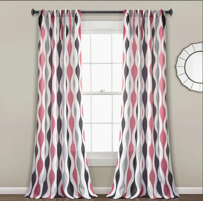 This Mid Century Geo Light Filtering Window Curtain Panel Set from offers a unique and stylish look. The design gives the illusion of liquid paint dripping down the panels, creating a striking statement piece for your home. These room-darkening panels energize your space while filtering sunlight and helping to regulate room temperature. Ideal for adding contemporary flair to bedrooms, living rooms, or home offices, this set invigorates any room with its modern pattern. Available in seven color combinations, the Mid Century Geo Light Filtering Window Curtain Panel Set is sold in pairs. Made with a 7.6 cm back tab rod pocket, these panels offer three hanging options: slide the curtain rod through the rod pocket, use clip rings, or use the back tabs. For easy maintenance, the panels are machine washable. Please follow the label for complete care instructions. *Note: Room Darkening Curtains differ from Blackout Curtains. Learn more about their differences. Part of the Mid Century Geo Collection. 100% Polyester No Lining Geometric Pattern Room Darkening: Filters About 70% Of Light Printed Care Instructions: Machine Wash Cold, With Similar Colors, Gentle Cycle. Use Only Non-Chlorine Bleach When Needed. Tumble Dry Low, Light Iron if Needed.