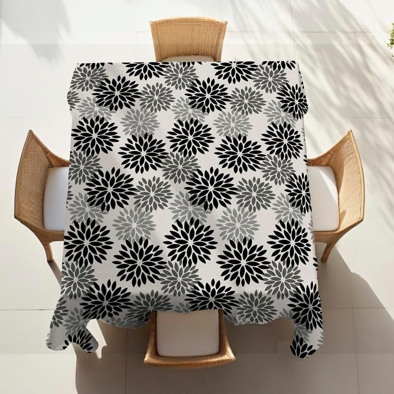 Linen Velvet Floral Tablecloth – Textured Fabric – Ultra-Soft, Spill-Proof & Wrinkle-Resistant – 1 Pc - Black x Grey