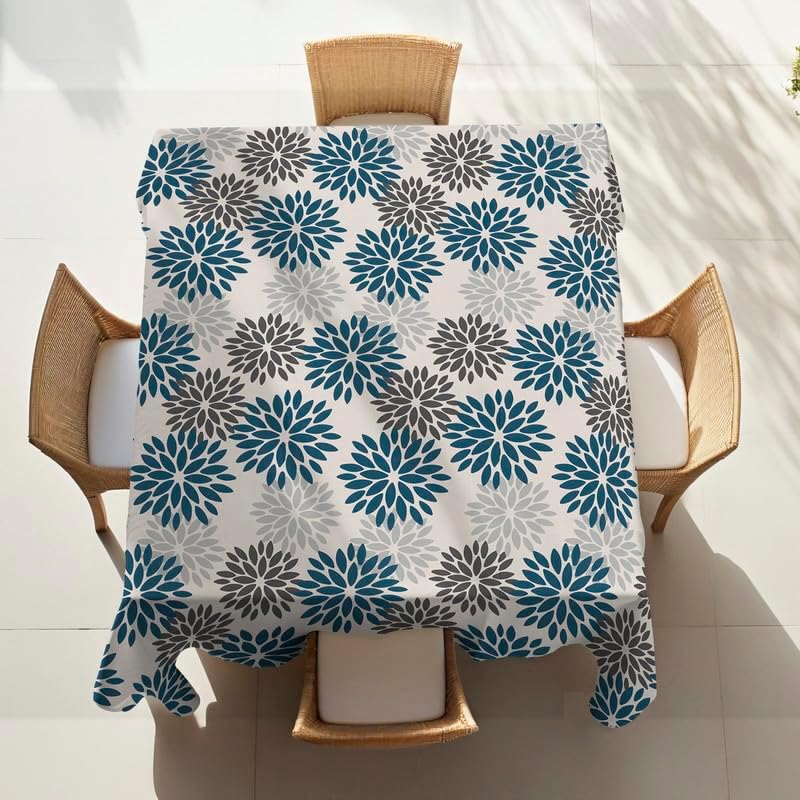 Linen Velvet Floral Tablecloth – Textured Fabric – Ultra-Soft, Spill-Proof & Wrinkle-Resistant – 1 Pc - Blue x Grey