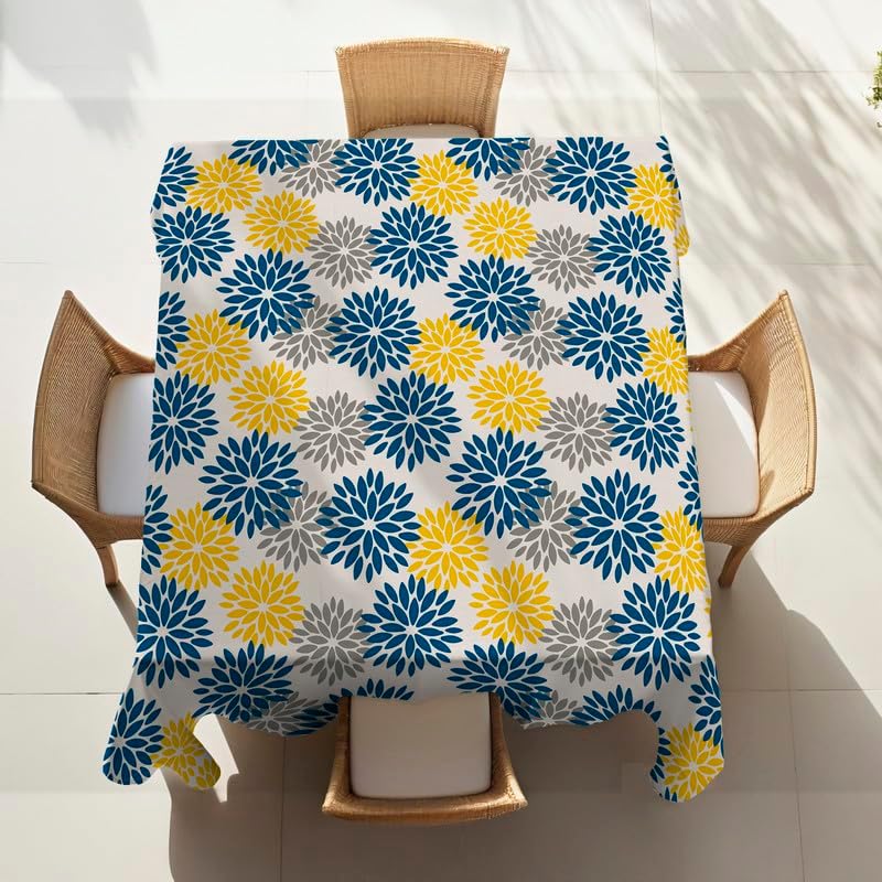 Linen Velvet Floral Tablecloth – Textured Fabric – Ultra-Soft, Spill-Proof & Wrinkle-Resistant – 1 Pc - Blue x Grey x Yellow