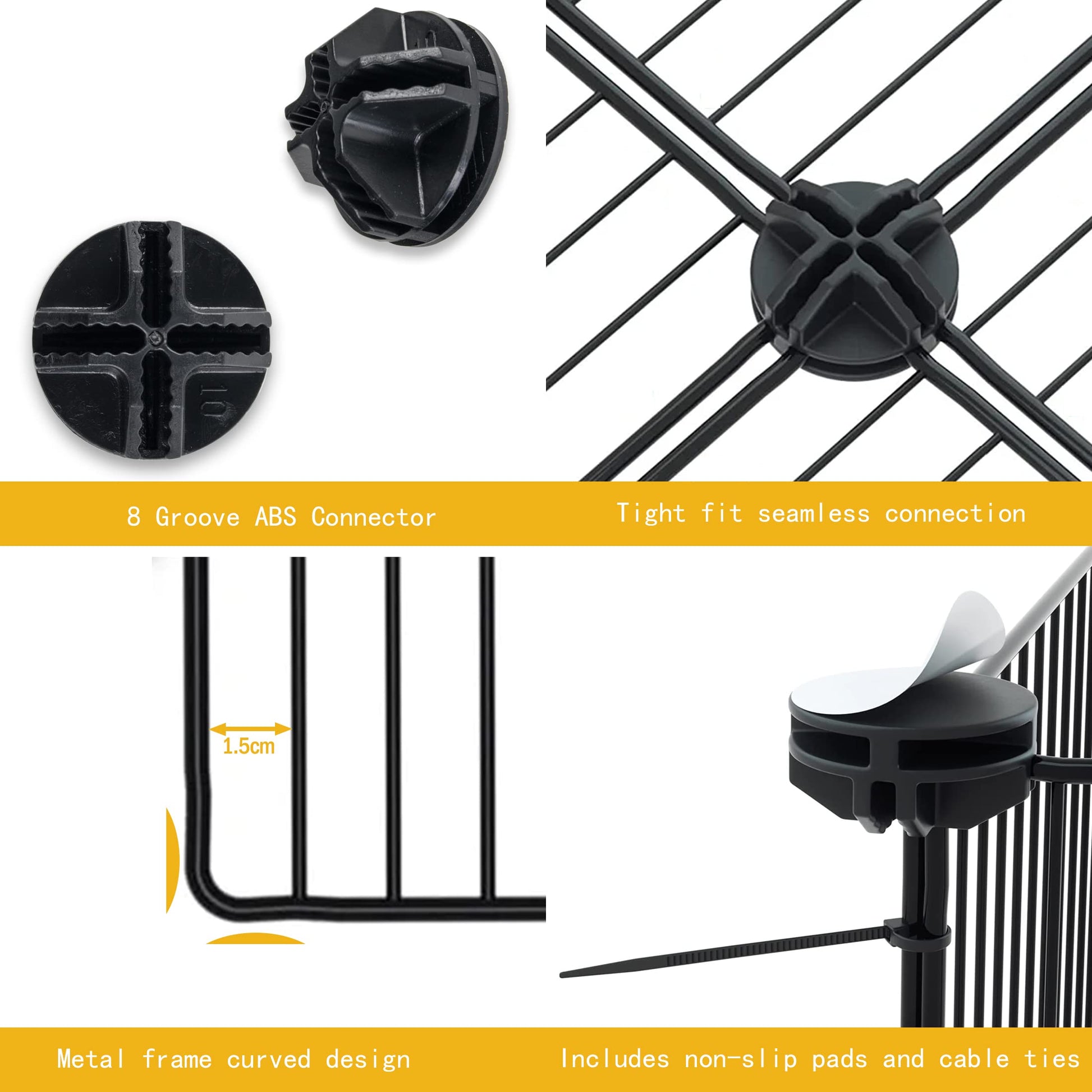 • High-Quality Materials: The thick and dense metal wire panels, high-quality ABS connectors, and comes with 30 cable ties and 14 anti-slip pads
