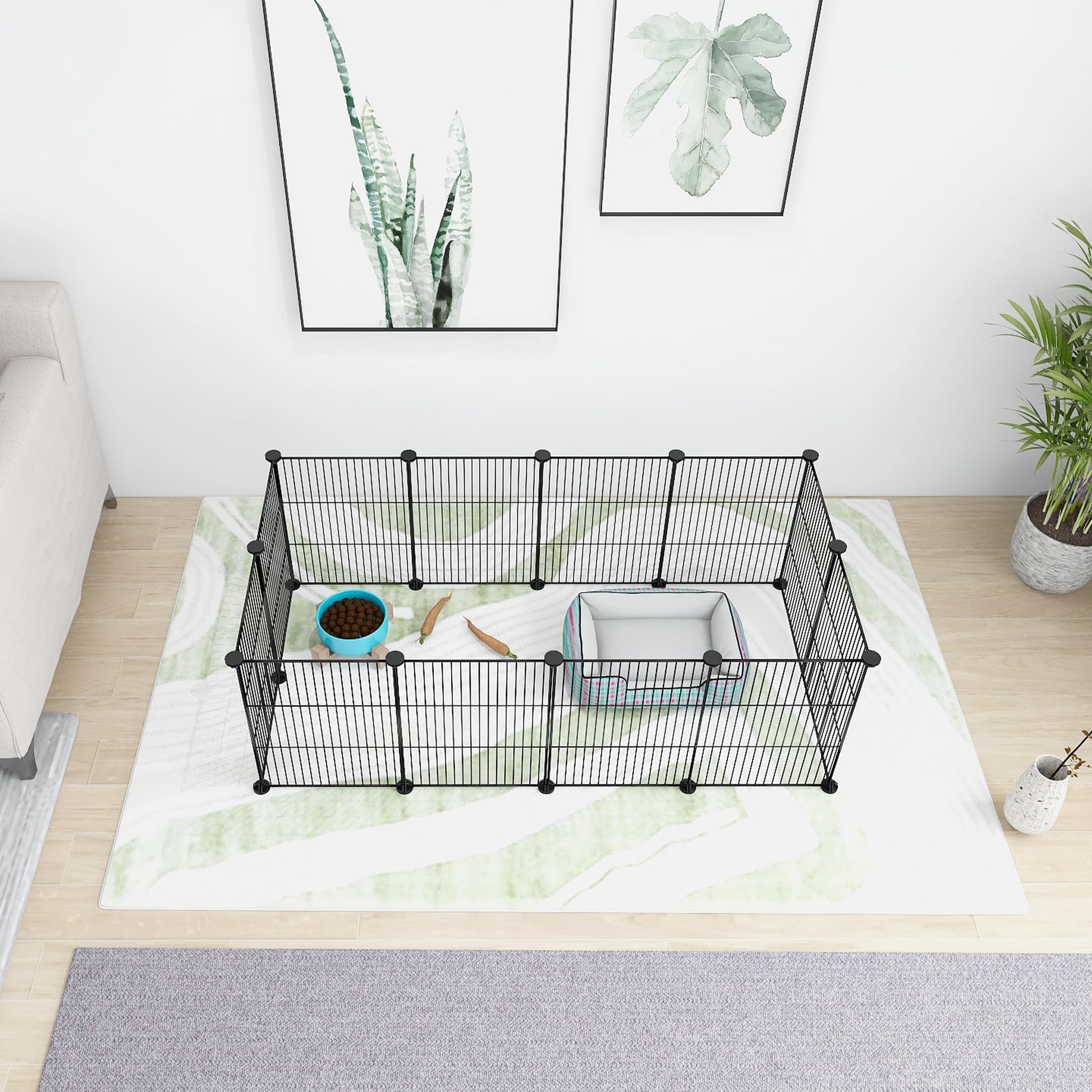 • Comfortable Pet Fence: This playpen is designed for rabbits, guinea pigs, hedgehogs, kittens, puppies small animals etc. It can be used in the living room, by the window, in the bedroom, etc. With DIY design, you can assemble it into different shapes and put it in different places according to your own space and needs. The product height is 16.1inches. It is only suitable for small animals. It is not suitable for large cats and dogs. Please measure the size you need in advance before buying