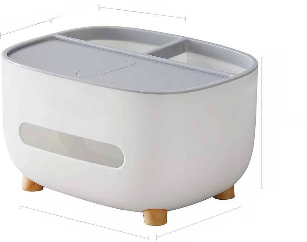 Multifunction Tissue Box Holder with Storage Caddy, Modern Napkin Dispenser and Organizer for Remote Controls & Office Supplies, ABS Plastic Desktop Caddy for Bathroom & Bedroom, Grey